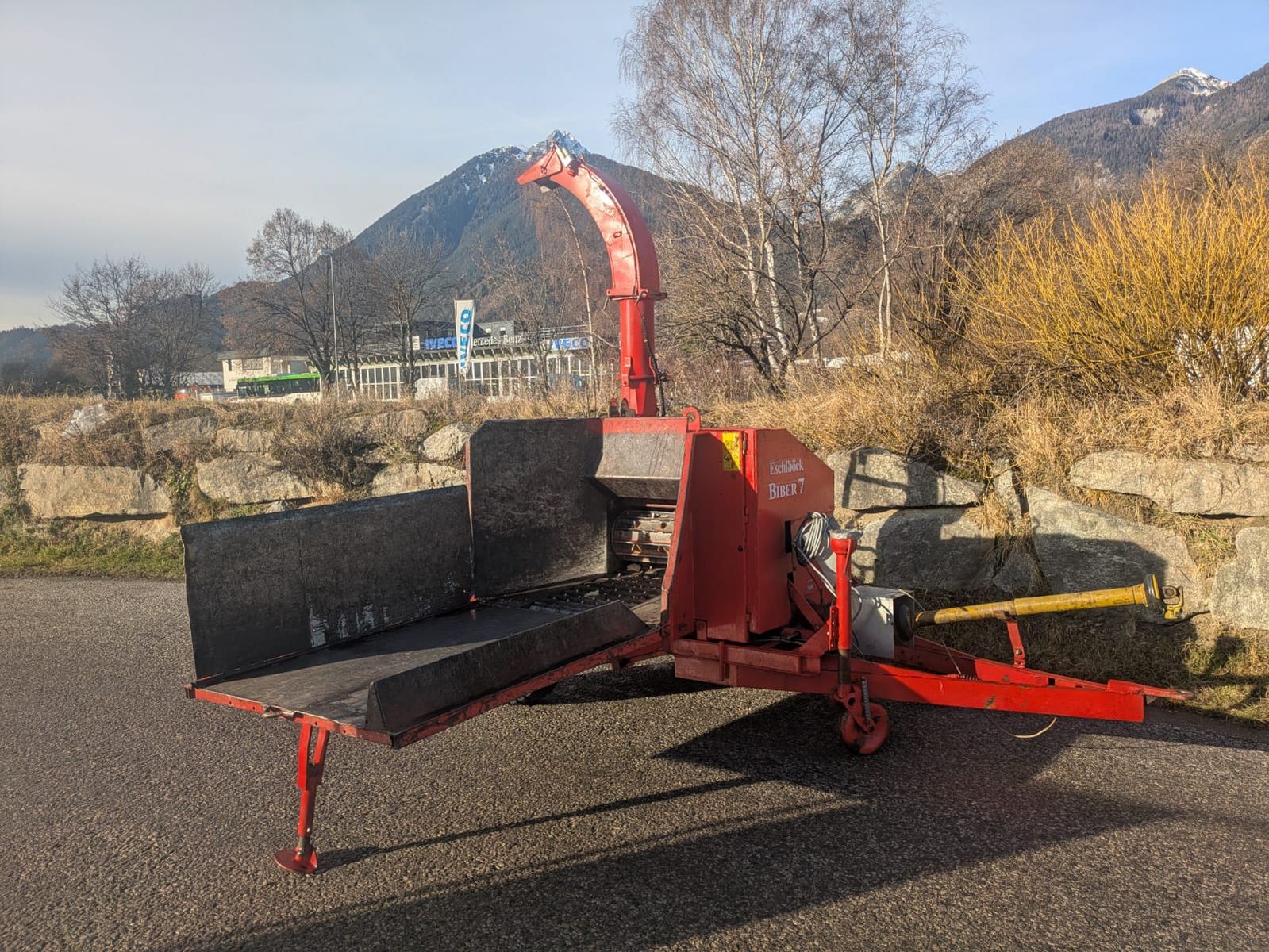Hacker Eschlböck Biber 7 - automatische Einzugssteuerung Antistress - Tischverlängerung - Messer geschliffen - Einzugsband - Festellbremse - Eigenölversorgung - Einzugsöffnung ca. 35x55cm. - Gegenschneide und Messer (8 Messer) - Leistungsbedarf: 80 bis 140 PS - Zapfwellendrehzahl: 1000 - Hydraulische Einzugswalze mit Anpressdruck - 360 Grad Turmverstellung elektrisch - Klappe elektrisch verstellbar - Rotorhacker - Anhängerkupplung hinten - elektrische Steuerung für Einzug vor-zurück und Walze auf-nieder - TOP eingestellt - perfekte Hackschnitzelqualität - G30