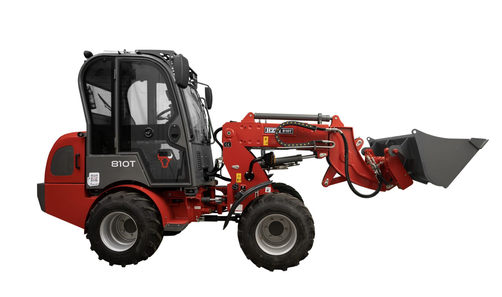Ausgestattet ist der HZM 810-T Profi mit einer 0,4 m³ Standardschaufel. Das hydraulische Schnellwechselsystem mit Euro-Aufnahme ermöglicht einen werkzeuglosen Wechsel von Anbaugeräten wie 4-in-1-Schaufeln, Kehrmaschinen oder Palettengabeln. Dank des dritten Hydraulikölkreises ist der Einsatz von Geräten mit Zusatzfunktionen problemlos möglich, um maximale Flexibilität auf der Baustelle zu garantieren. Weitere Anbaugeräte sind auf Anfrage erhältlich.