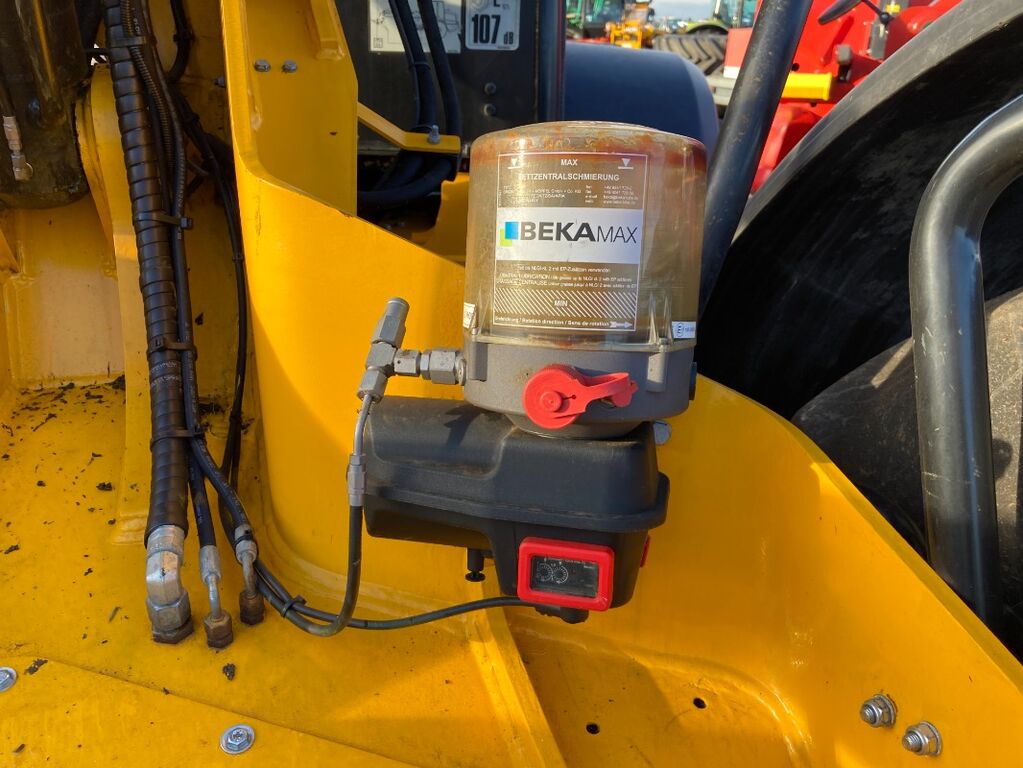 ohne Arbeitsgeräte, Schnellwechselrahmen, hydraulische Geräteverriegelung, 3. + 4. Steuerkreis, 40 km/h, automatische Zentralschmierung, Rückfahrkamera mit Monitor, Klimaanlage, Bereifung 620/70R26