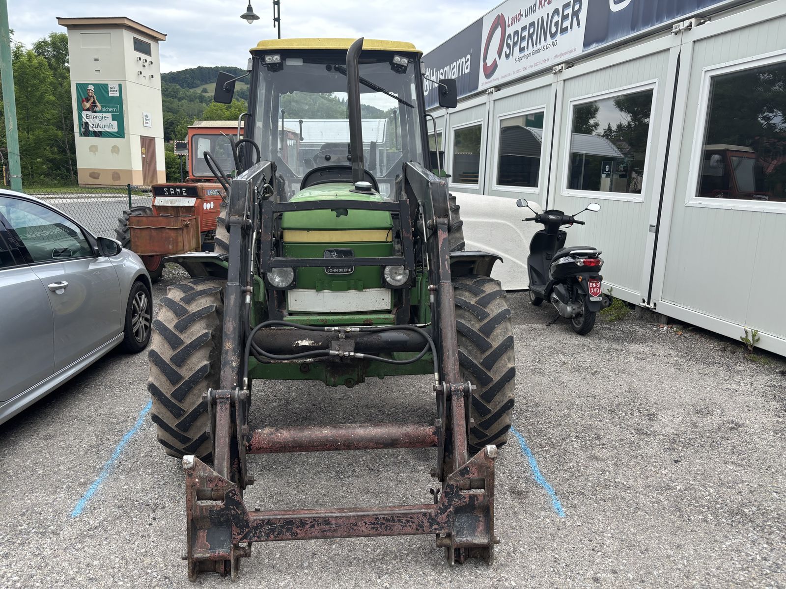 Frontlader mit Haueraufnahme und Abstellstützen.