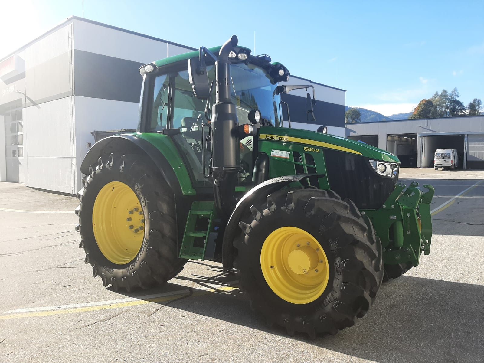 John Deere 6120M - Vorführmaschine - 4 Zylinder John Deere Motor mit 4,5l und 120 PS Nennleistung - Intelligent Power Management 20 PS - AutoPowr Stufenlos Getriebe - 40 km/h - Fronthydraulik Kat. III mit 2 Doppelwirkenden Steuergeräten - Frontzapfwelle - Kabine mit Federung und Panorama Frontscheibe - CommandARM - Klimaanlage und Premium Radio - Luftgefedeter Sitz - Leder Lenkrad - LED Beleuchtungspaket Premium - TLS mit Bremsen - Hydraulikpumpe 114l/min - Heckunterlenker mit Kat. III - Hubkrafterhöhung - Heckzapfwelle mit 540/540E/1000 - 3 elektrische Hecksteuergeräte - Außenbedienung am Kotflügel für Heckhubwerk, Zapfwelle und 3. Steuergerät - 2 Leiter Druckluftbremsanlage mit Lufttrockner - Vorbereitung für Zusatzdruckversorgung LS - iTEC Basic - JDLink Modem - Elektrisches Zwischenachssteuergerät mit 2 Funktionen - Bereifung: Vorne Trelleborg 540/65 R24 Hinten Trelleborg 600/65 R38 Wir nehmen uns gerne für Fragen oder Besichtigungen auch außerhalb der Öffnungszeiten für Sie Zeit. Eine Kontaktaufnahme würde uns sehr freuen!
