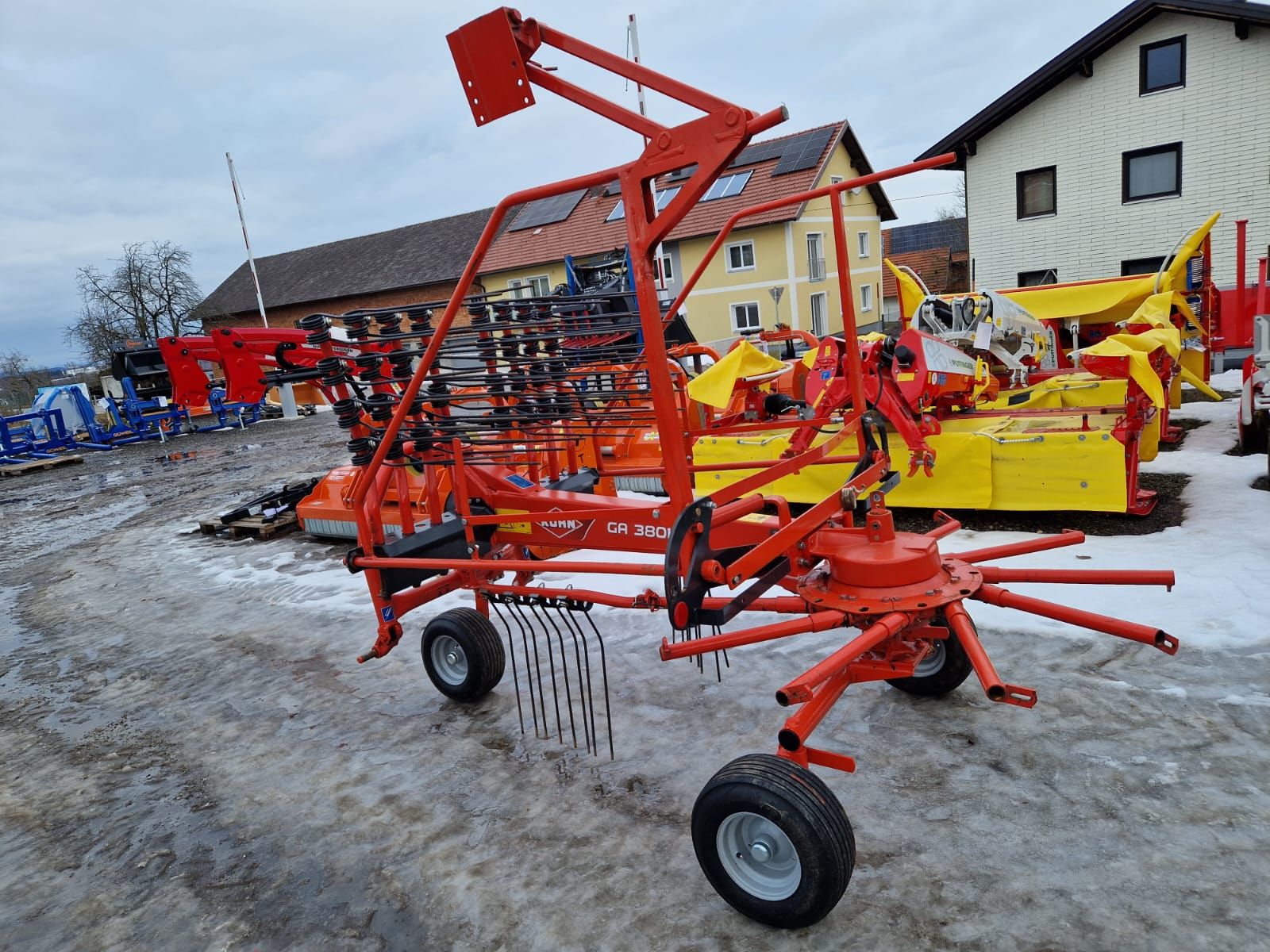 Wenig benützt # mit Schwadtuch Arbeitsbreite: 3,8 m Ballonbereifung 15 x 6.00-6 mit Tastrad Transportbreite bei abgenommenen Zinkenarmen: 1,66 m Kreiseldurchmesser: 2,90 m Dreipunktanbau Kat.II Leistungsbedarf Zapfwelle (kW/PS): 19/25