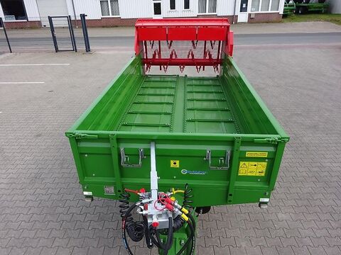 PRONAR Stalldungstreuer N 161 Einachsstreuer, NEU Technische Daten: Gesamtgewicht 8200 kg Eigengewicht 2200 kg Nutzlast 6000 kg Ladevolumen 4,1 m³ Ladefläche 7,6 m² Pritsche innen LxB 4000 mm x 1900 mm Gesamtmaße LxBxH 5780/2230/2750 mm Bordwandhöhe 500 mm Plattformhöhe 1150 mm Blechdicke (Boden/Bordwand) 3/2,5 mm Spurweite 1660 mm ohne Federung Deichselaugetragkraft 1500 kg 40 km/h Ausführung Zapfwellendrehzahl 540 U/min Max. Streubreite 2400 mm Bereifung 500/50 - 17 Serienmäßige Ausstattung: 2 Streuwalzen liegend 2 Ketten 11 mm Hydraulischer Kratzbodenantrieb Stufenlose Geschwindigkeit für Kratzboden Weitwinkelgelenkwelle 6 x 6 (Z 6 1 3/8") Stahlprofilbordwände Unten- und Obenanhängung mit Zugöse Ø40 mm 2-Leiter Druckluftbremse Kurbelbremse klappbares Stützrad vorderes Schutzgitter Beleuchtungsanlage 12 V Keile mit Halter Rahmen grün RAL 6010 Adapter rot RAL 3000 Gewicht ca. 2200 kg Gegen Mehrpreis: 40 km/h Ausführung, EUR 395,-- Weitwinkel-Gelenkwelle 6x6 (Z6 1 3/8"), 490,-- Unterfahrschutz für Miststreuer N161 mit Beleuchtung, Nummernschildhalter, und Halter für den Streuwerksschutz - Pflicht im öffentlichen Straßenverkehr -, 1.325,-- Alle Preise zzgl. Mwst Finanzierung und Anlieferung gegen Mehrpreis möglich. Alle Preise zzgl. MwSt zzgl. Frachtkosten
