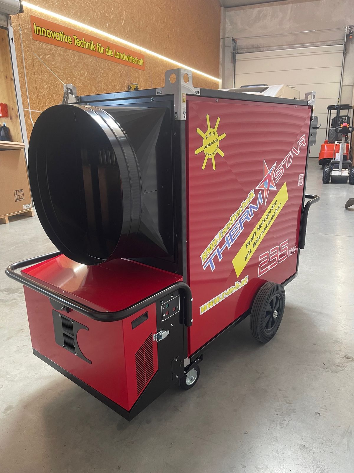 Öl-Heizgerät mit 235kw Anschluss/Frequenz: 400 V~50 Hz Motorleistung Lüfter: 2550W Heizleistung: 216,86kW / 186,498kcal./h Gebläseleistung: 17000m³/h Verbrauch: 18,65kg/h Brennstoff: Heizöl oder Winterdiesel Abmessungen L x B x H: 2245 x 982 x 1584mm Gewicht : 351kg