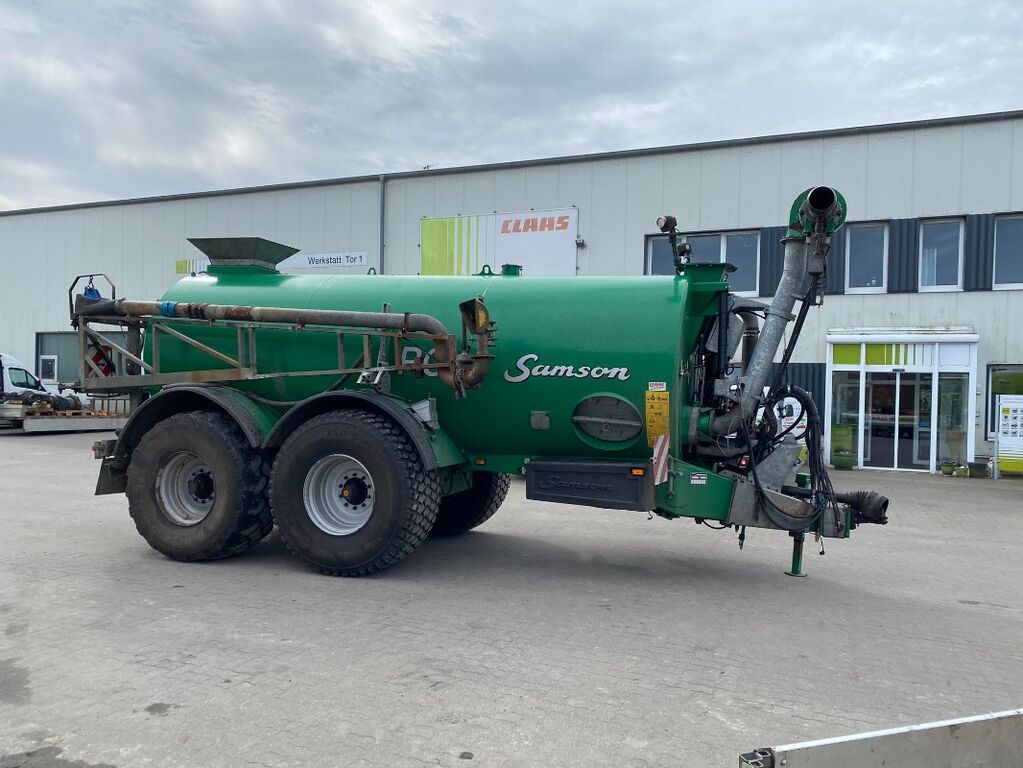 Samson PG 18 Güllewagen; 2 Achsen, hydraulisch gefedert, Standard Lenkung über Nachlaufachse hinten; Tank von aussen lackiert und von innen mit epoxy behandelt. Grundausstattung mit Samson Bordcomputer Slurry Master 6000, Durchflussmengenregler über Fahrgeschwindigkeit, Samson Kreiselpumpe zur Ausbringung inklusive Fremdkörper Mulde, elektrohydraulischer Steuerung des gesamten Wagens, hydraulischer Kugelhahn für Rührfunktion, Sektionsentleerung, Inspektionsdeckel, Befülltrichter, Stützfuß, seitlichem Blindflansch, Elektronische Befüllanzeige, weitwinkel Gelenkwelle, Halterung für Schleppschlauchgestänge, gesetzliche Beleuchtung, Arbeitsbeleuchtung (2 Stck. Xenon + 1 oder
