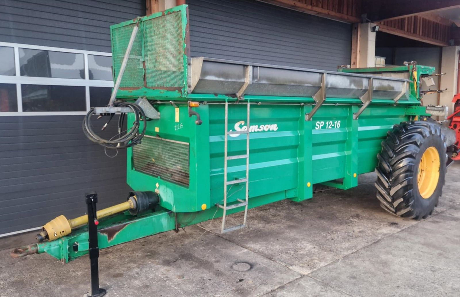 Samson SP12-16 Streuwerk mit 2 geneigt stehenden schnecken- förmigen Fräswalzen und untenliegendem Streutisch mit je 2 Wurfschaufeln zum Verteilen von Kompost und Stalldung, Arbeitsbreiten von bis zu 12 m! Streuwerkverschleissteile komplett erneuert! Mit hydraulischem Kratzbodenantrieb Stauschieber hydraulisch gebremst WW-Gelenkwelle Sofort einsatzbereit!!!! Zusätzliche Bilder können gerne per Mail zugesendet werden!