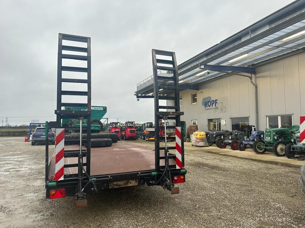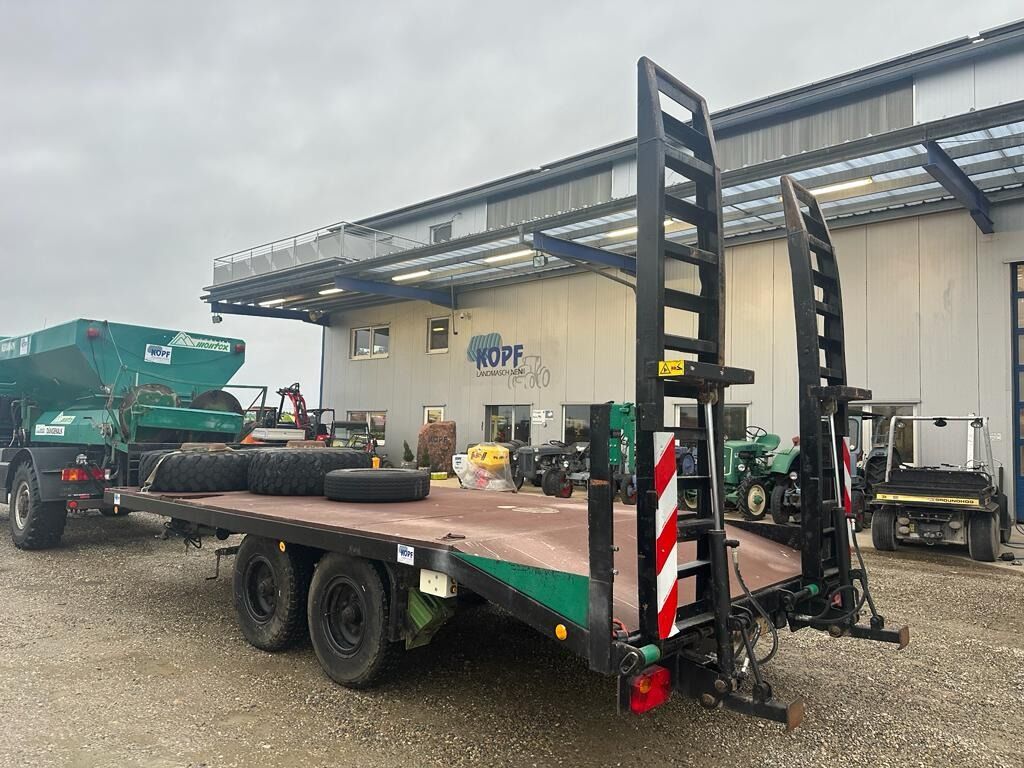 Müller Tandemanhänger Typ ETUTAS 40,60,80 km/H(Int-Nr.: 14302) Baujahr 1990 38er Zugöse, Staukasten, 8 Zurrösen, Auffahrrampen hydraulisch, Stützen an Rampe, höhenverstellbare Deichsel, Ersatzrad, Bordwand vorne 0,3 m hoch, Rampenlänge 2,5 m Bereifung 8.25 R16 30-60 % 7,8 Tonnen Stützlast 1000 kg Leergewicht 2550 kg 6,0 m lang 7,3 m breit 0,95 m hoch Es handelt sich hierbei lediglich um eine Anzeige, die zu Informationszwecke dient. Der Kaufvertrag kann nach unseren AGBs mit uns abgeschlossen werden
