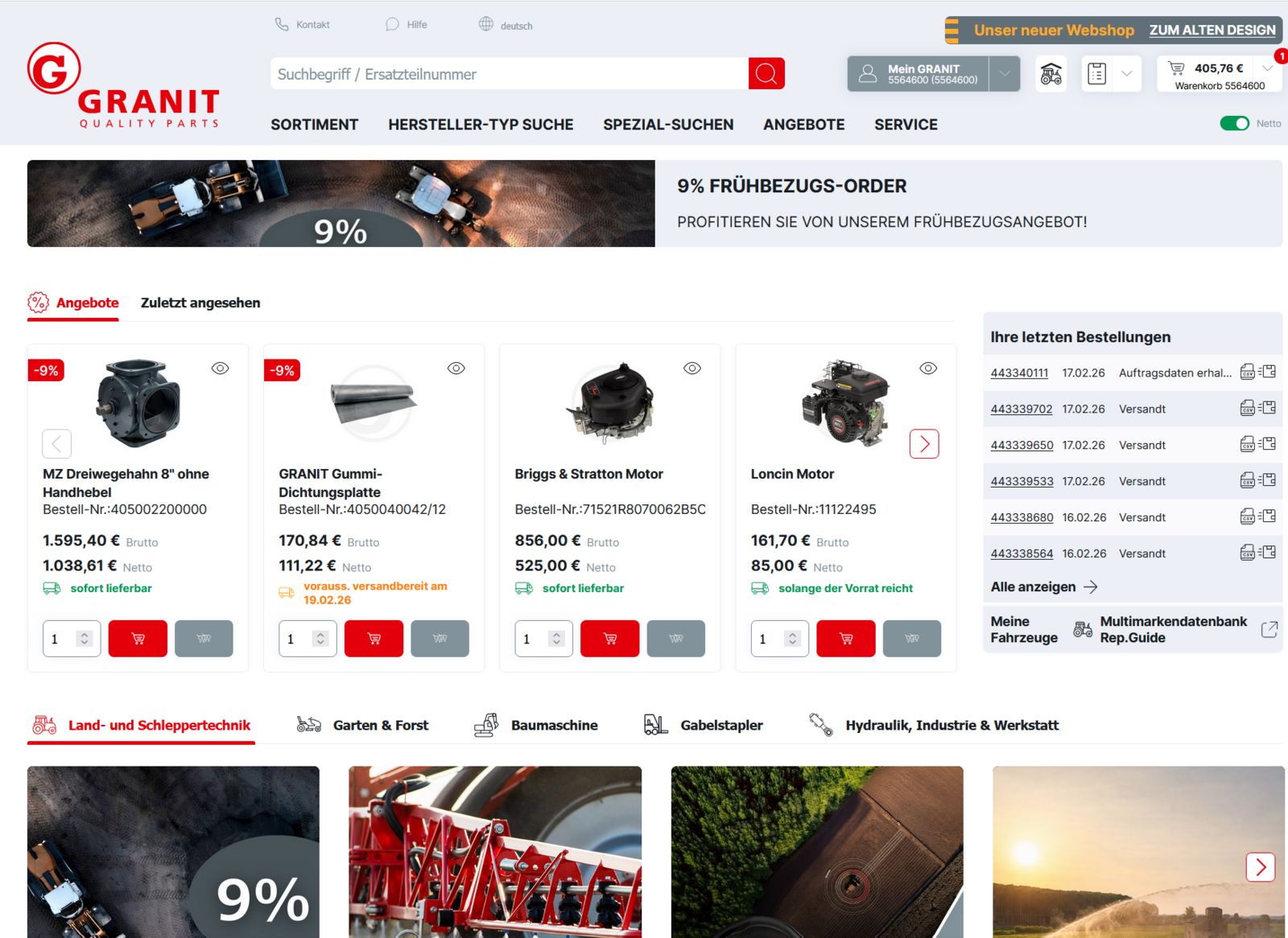 Granit Parts ist einer der größten Anbieter von Ersatzteilen für die Landtechnik in Europa und bietet Zugriff auf ein extrem umfangreiches Sortiment. Gesamtsortiment: Über 14 Millionen Artikel (Ersatzteile und Zubehör) sind im Sortiment verfügbar. Granit Partnershop Fokus: Das Angebot umfasst Teile für Landmaschinen, Traktoren, Garten- und Kommunaltechnik, Forstwirtschaft sowie Werkstattbedarf. Marken: Es werden sowohl Originalteile als auch Identteile (Qualitätsteile) von zahlreichen Herstellern angeboten. Jetzt Zugang anfordern!!! Sichern Sie sich jetzt Ihren Zugang und profitieren Sie von einem der größten Ersatzteilsortimente Europas! Einfach E-Mail mit Anschrift und Mailadresse schicken, und sie bekommen noch heute einen Zugang. Sensenberger Agrartechnik GmbH -
