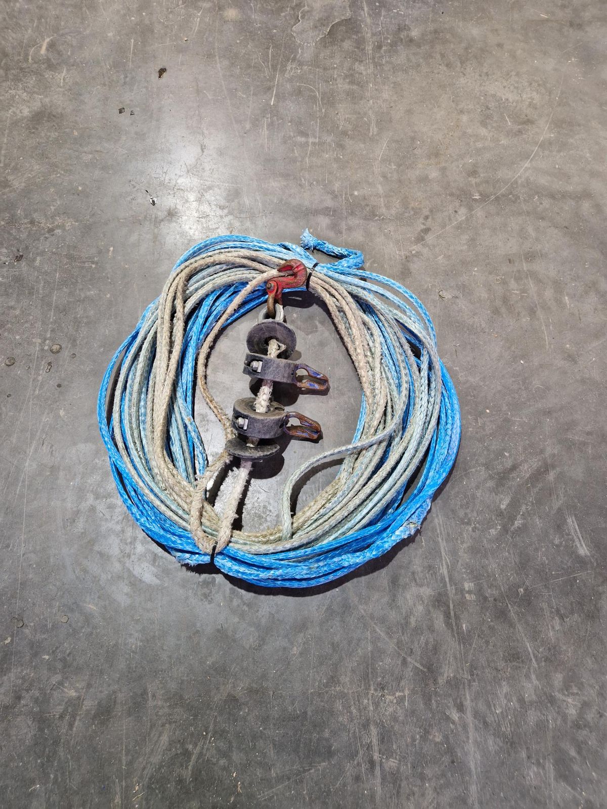 60lfm Grube Kunststoffseil mit 14mm Dm, Bruchkraft 180kN, 2x Seilgleiter und Endhaken, 01kg/lfm
