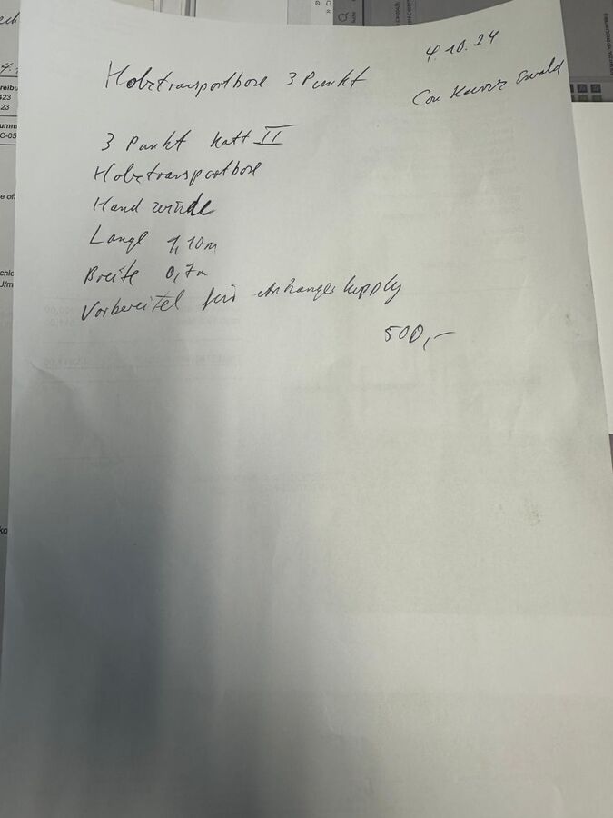 Holztransportbock mit 3-Punkt Kat II (Int-Nr.: 15058) 3-Punkt, Kat II, Handwinde, Länge: 1,10 m Breite 0,7 m Vorbereitung für Anhängekupplung