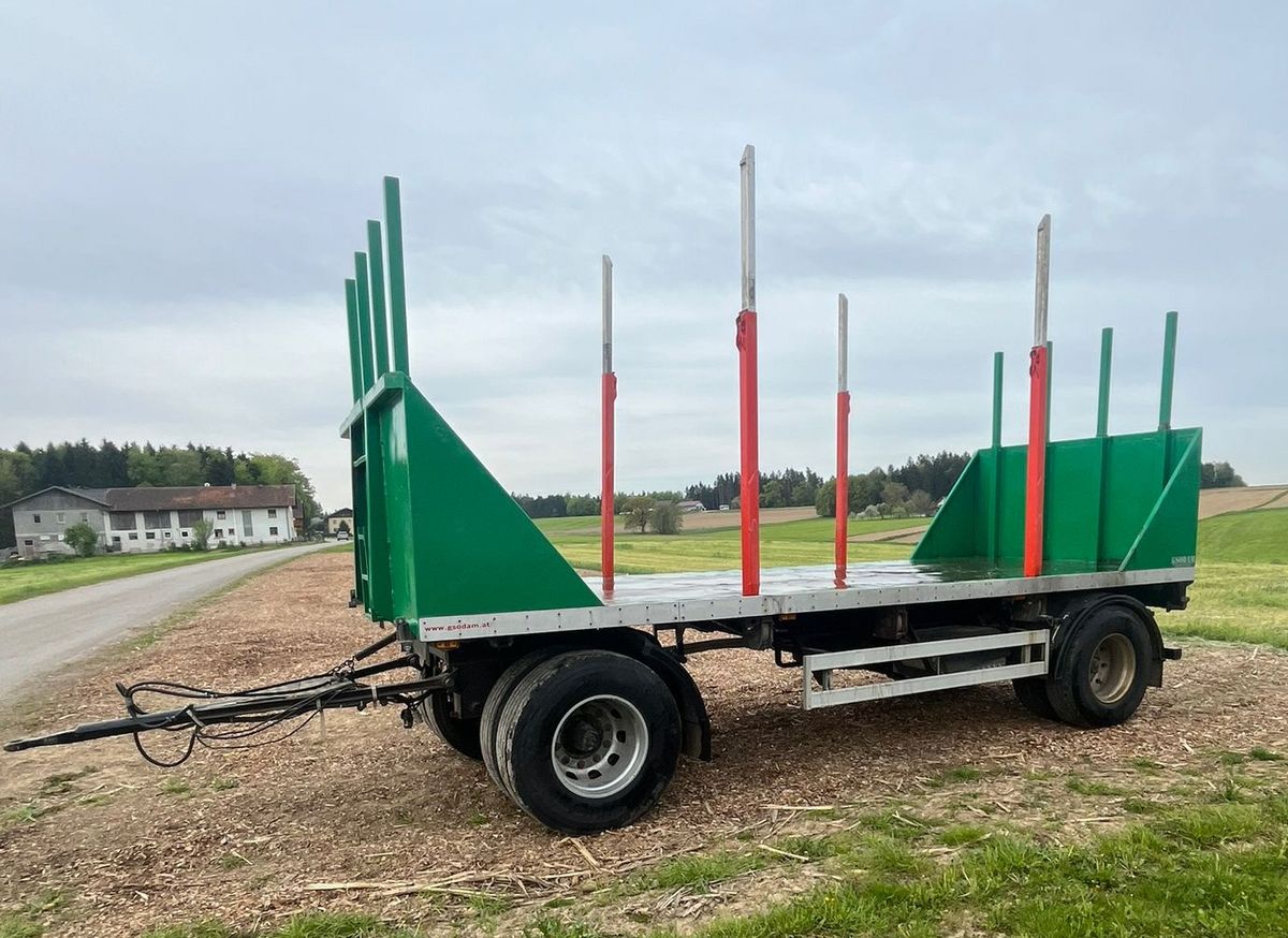Riedler- Gsodam Rungenwagen/Plattformwagen Baujahr 2005, EG 5080kg, Nutzlast 12920kg, zul.GG 18000kg, Plateau 6200mmx2500mm, BPW Achsen luftgefedert mit Federspeicher, 4 Stk. Rungen, 8 Rungensteckplätze, Typenschein Anhänger wurde vor 3 Jahren generalsaniert