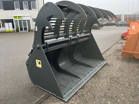 Die Greifschaufel (von vielen auch Silagebeißschaufel genannt) ist geeignet zur Entnahme und Transport von Silage aller Arten aus dem Silostock, sowie für Ausmistarbeiten. Wir liefern sie anbaufertig für Radlader bzw. Teleskoplader. Serienausstattung • Hochverschleißfeste Schürfleiste (200x20mm, 500HB) • Hochverschleißfester Unterbau mit mehreren Verschleißstreifen (500 HB) • Schaufelhöhe 900mm, Schaufeltiefe 1100mm • Mit 2 Hydraulikzylindern (max. Arbeitsdruck 220 Bar) • Öffnungsweite 1550mm, max. Aussenbreite = Breite +50mm (vorne) / +80mm (hinten) • Mit 4 Oberzangenlagerpunkten • Mit Seitensicheln für weniger Transportverluste • Mit 2 innenliegenden Aussteifungen in Serienausrüstung + Aufnahme Teleskoplader CLAAS SCORPION + Breite 2.400 mm, Inhalt 2.400 Liter + Schürfleiste: geschraubtes Wendemesser 250 x 25 mm, 500 HB + Druckbegrenzungsventil + Farbe RAL 7043 - grau