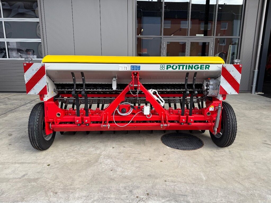 Solo-Sämaschine Pöttinger Vitasem 3000 Classic-25 Scheibenscharen Scharabstand 12cm-Andruck- und Tiefenführungsrollen-Saatgutbehälter 530lt-Bediensteg mit Handlauf-Compass Bedienung mit Abdrehhilfe-elektr. Füllstandsüberwachung-FG-Schaltung 2 Reihen je Spur-Rührwelle drehend-Stufenloses Getriebe-Bereifung 6.00-16-Antrieb Säwelle über Sporrenrad-Warntafeln mit Beleuchtung, Gewicht:850