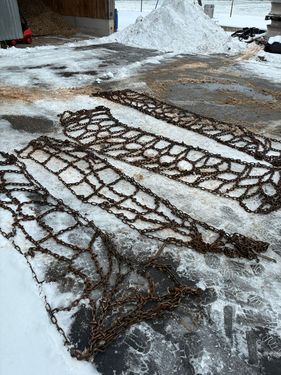 Nr. 685671 Paar 600/65R38 Netzketten- mit 8mm Gliederstärke- mit D-Profil-Eiskantengreifglieder aus OSS-Spezialstahlwendebar für doppelte Kilometerleistung
