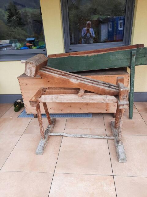 Antike Flachsbreche, Länge: 122 cm, Breite: 42/37 cm, Höhe: 82 cm. Gut erhalten. Kombajni Ostali kombajni
