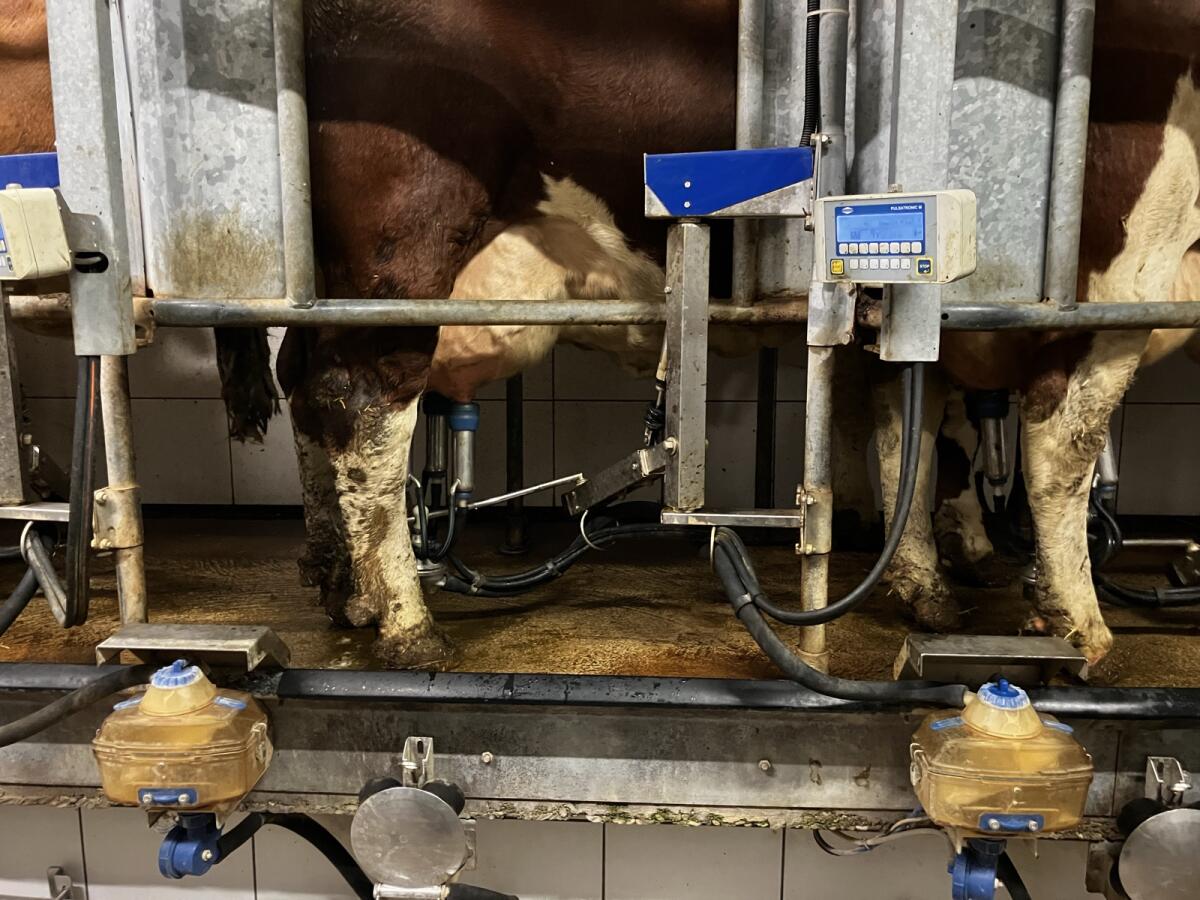 2*4 Fischgräten-Melkstand, Milchmengenmessung, Abnahmeautomatik, Herdenprogramm, Kochendreinigung.