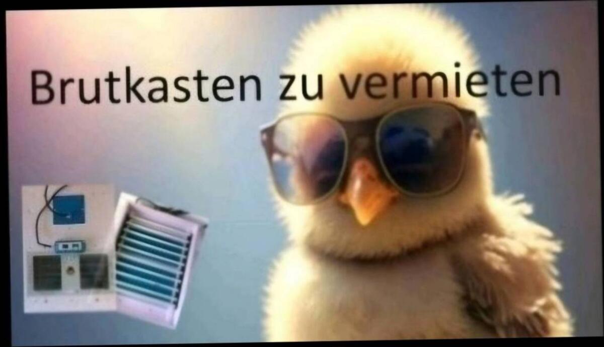 Ich biete hier Lohnbrut für Ihre Hühner und Wachteln sowie Enten an. Gebrütet wird bei uns mit den besten Geräten (Bruja 3000d) und wir haben Platz für bis zu 50 Hühnereier, 35 Enteneier oder ca. 100 Wachteleier. Preise wären: Hühnereier: pro Ei € 1,-, pro geschlüpftem Küken € 2,-, Enteneier: pro Ei € 2,-, pro geschlüpftem Küken € 3,-, Wachteleier: pro Ei € 1,-, pro geschlüpftem Küken € 1,-. Die Kosten für die Eier sind bereits vor der Brut zu begleichen, da ansonsten die Brüter nicht eingeschaltet werden. Die Küken sind danach als Tagesküken abzuholen. Bis dahin bekommen sie bei uns artgerechtes Kükenfutter.