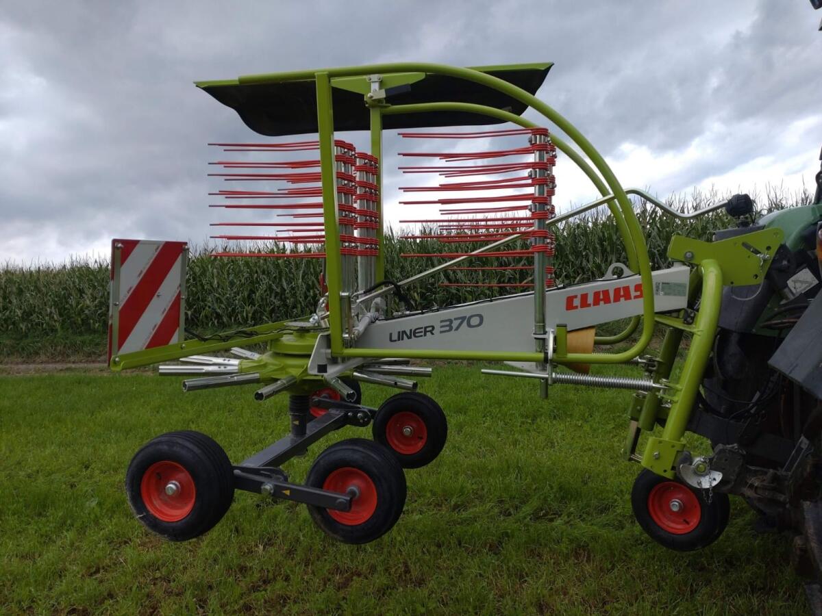 Biete nagelneuen Claas Liner 370. Schwader hat totale Vollausstattung, 2,99 m Transportbreite, Schutzbügel und Schwadtuch hydr. klappbar, somit kein Absteigen für Straßentransport. 10 Arme mit 4 Zinkenpaaren, nicht 3 wie serienmäßig, somit saubere Rechleistung. Tastrad und Tandemfahrwerk für saubere Bodenanpassung. Warntafel mit Beleuchtung. Schwader wäre zum Strohwenden gekauft worden, aber nie eingesetzt worden. Zapfwelle ist noch verpackt.