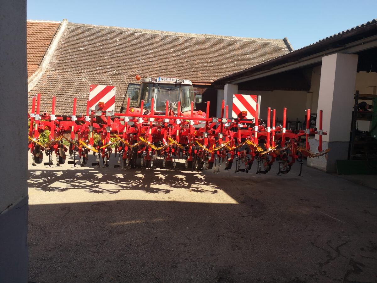 Bj. 2021, 12-reihig, Reihenweite 50 cm, Schutzscheiben, Fingerhacke, 37 Vibrozinken (40x12), Hartmetallschare, Häufelschare, Warntafel und Beleuchtung, Abstellstützen, Row Guard 500 - automat. Kameralenksystem hydr. Verschieberahmen für Heckanbau mit Spurkranzräder, mechanischer Reihentaster, Kamera inkl. Halterung u. Bedienterminal.