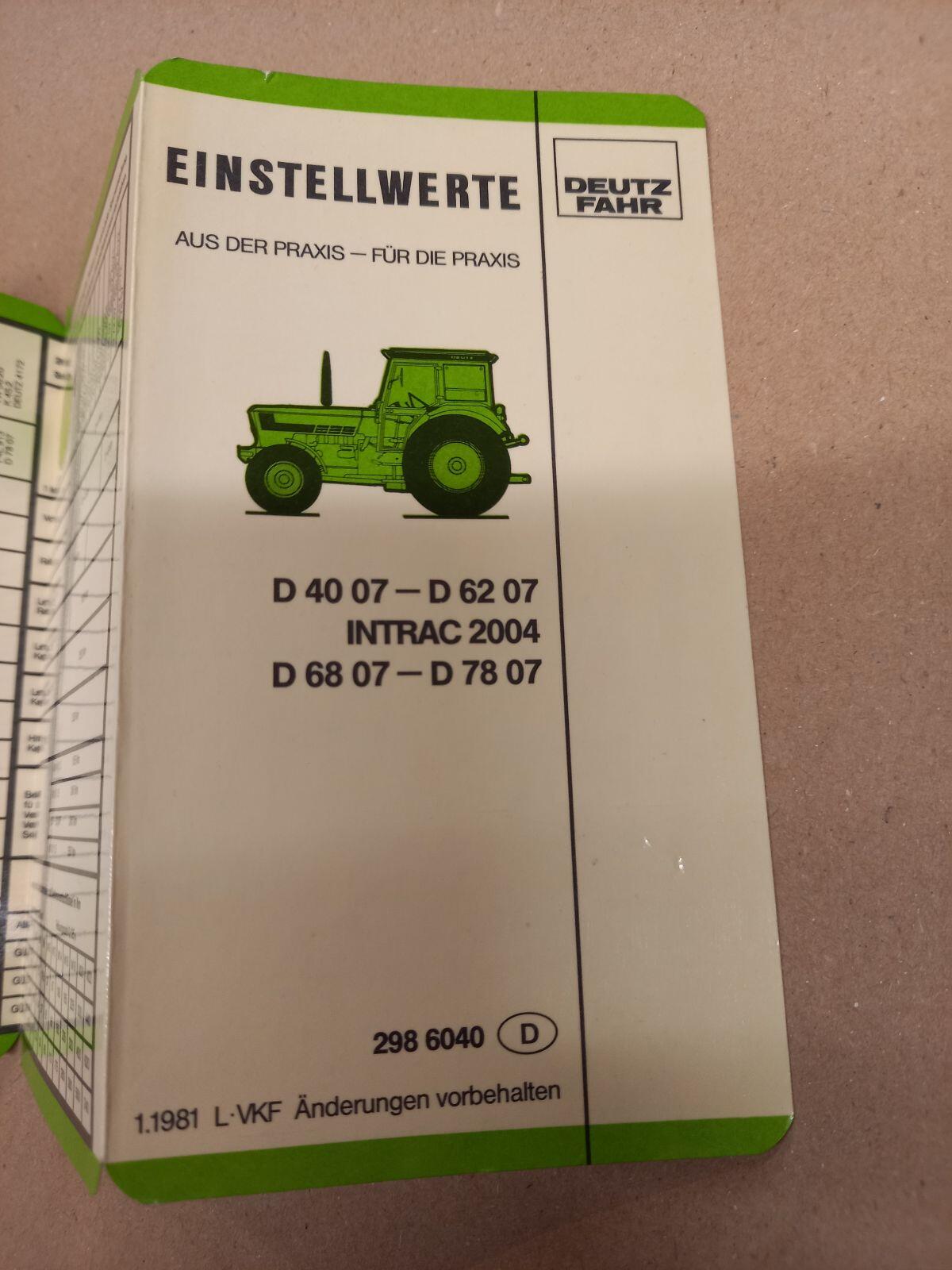 Einstellwerte Deutz Traktor inkl. Versand für € 15,- inkl. Versand nach Österreich € 17,-.