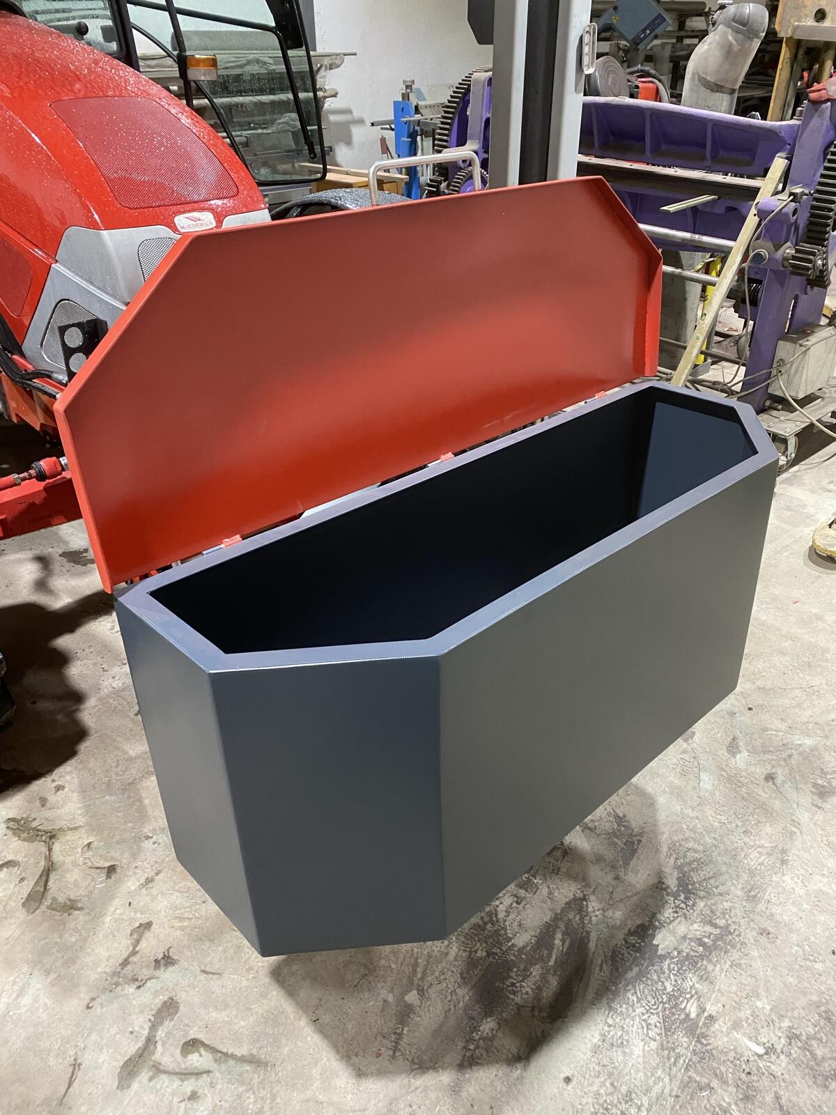 Frontkiste/Forstkiste 1,2x0,4x0,5 aus massivem 3 mm Stahlblech, KAT 2. Div. Größen verfügbar. Bei Fragen melden.