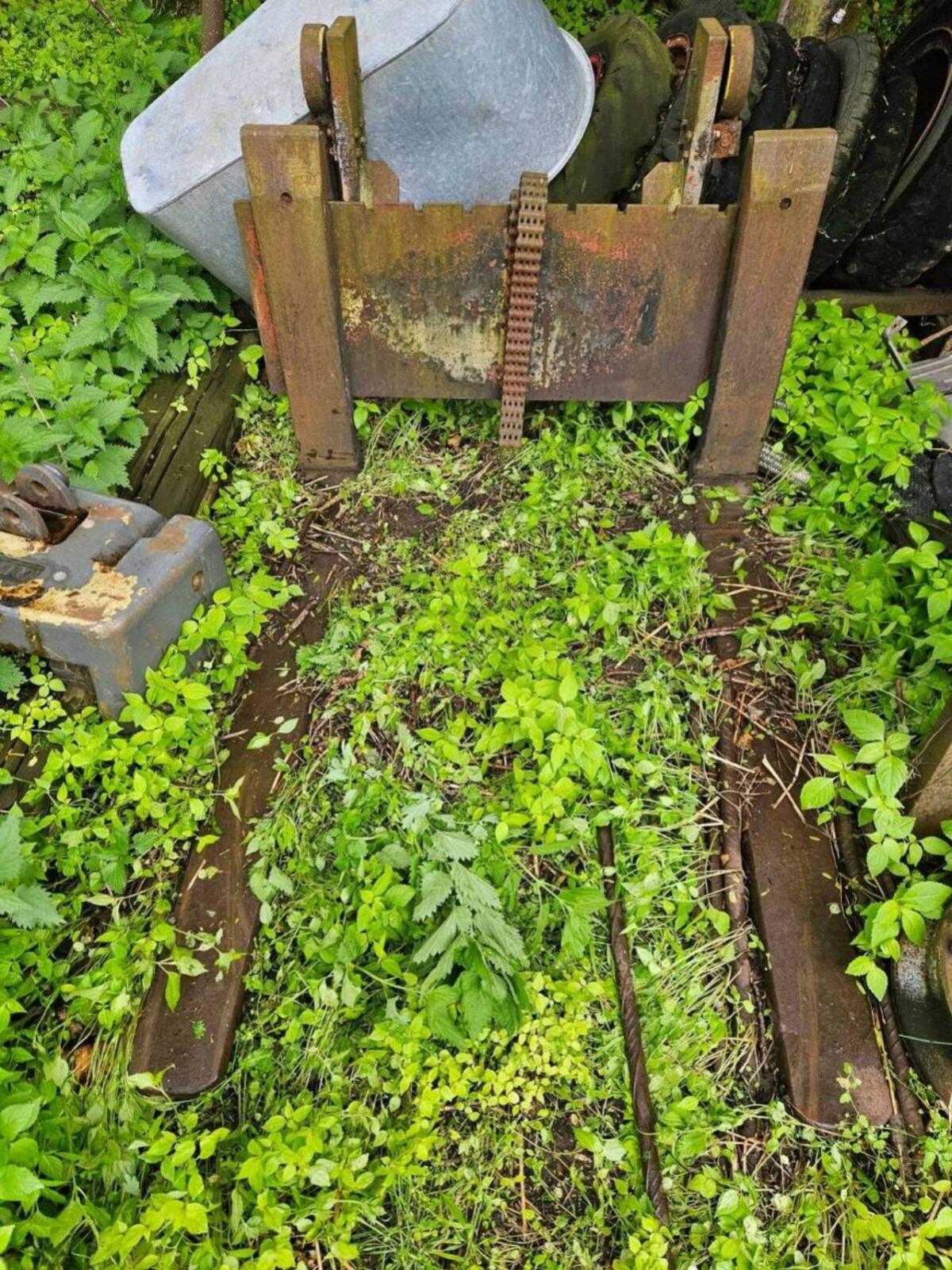 Sehr massive Staplergabeln zum Umbauen auf Dreipunkt oder Sonstiges. Gabellänge 140 cm, Breite von der Aufhängung 115 cm, Gesamthöhe 95 cm. Waren auf einem Seitenstapler montiert.