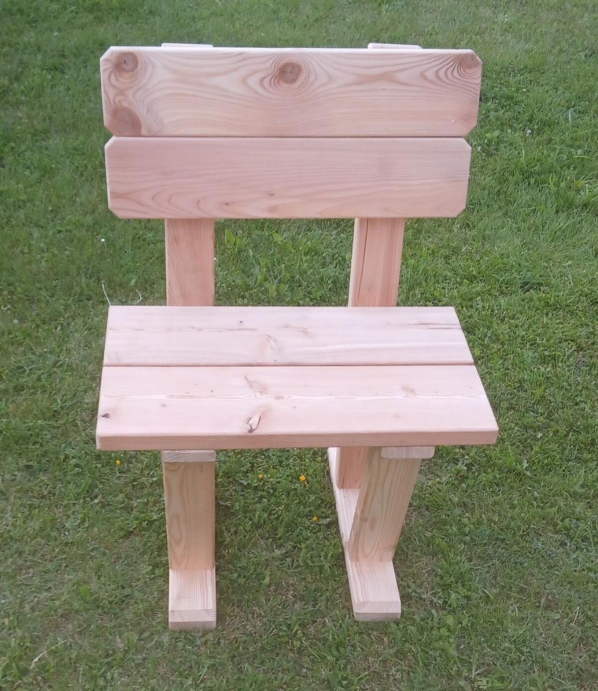 Gartenbank aus Lärche, Länge 50 cm, Höhe 88, Tiefe 43, Sitzhöhe 45 cm.