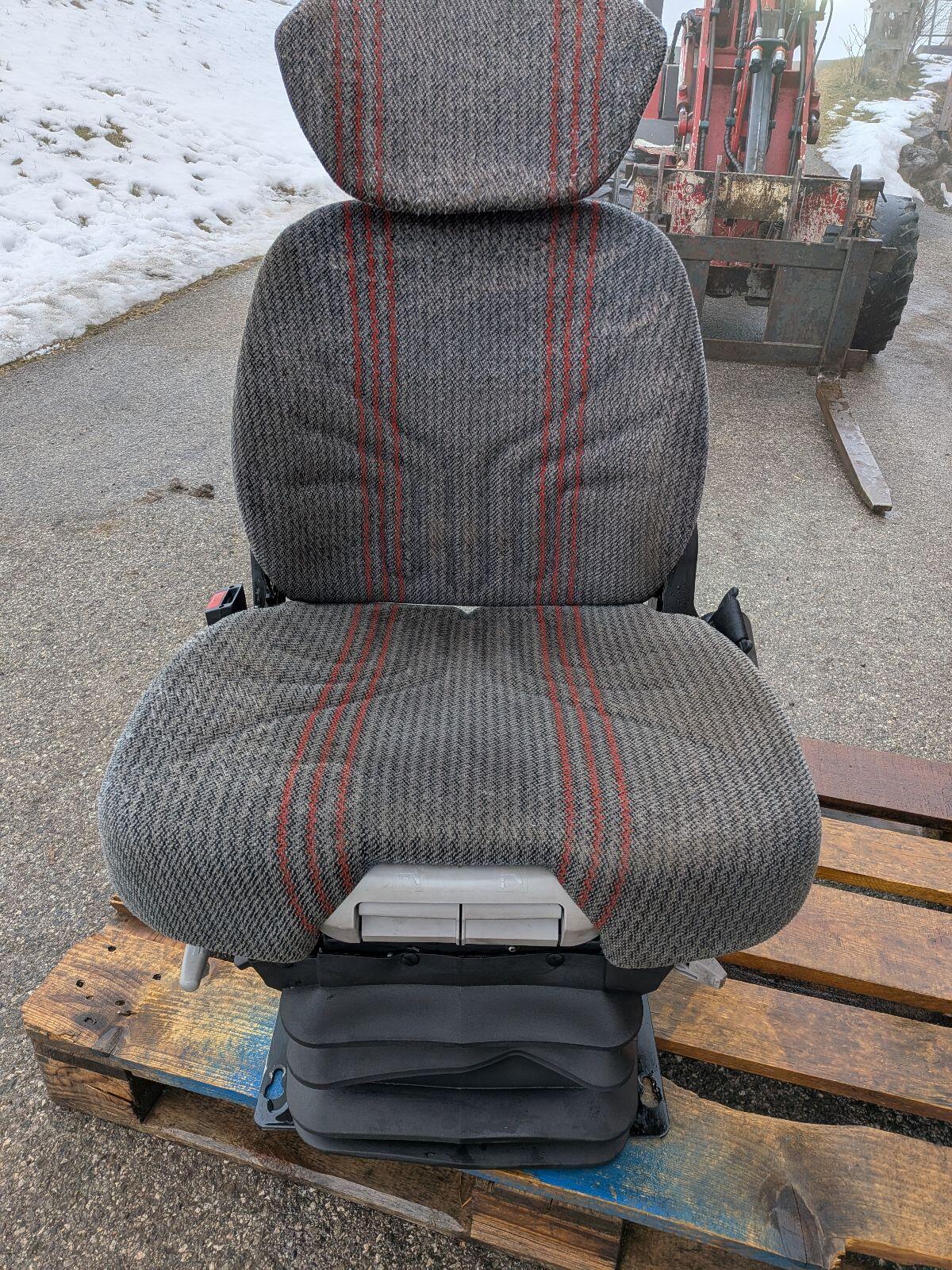 Grammer Maximo Luftfedersitz in der typischen Steyr-Ausführung. Der Sitz ist ideal als Ersatz oder zum Nachrüsten für Steyr-Traktoren, passt aber dank der Standard-Konsole auch auf viele andere Fabrikate. Zustand: Gebraucht, Polsterung ist sauber und nicht durchgescheuert. Ausstattung & Funktionen: Pneumatische Federung: Mit integriertem 12V Kompressor. Komfort: Längs-Horizontalfederung (schont den Rücken bei Stößen). Einstellbarkeit: Stufenlose Höhenverstellung, Rückenlehne neigbar, Lordosenstütze mechanisch. Extras: Inkl. höhenverstellbarer Rückenverlängerung (Kopfstütze) und Armlehnen-Vorbereitung. Der Sitz ist voll funktionsfähig und die Luftfederung hält dicht.