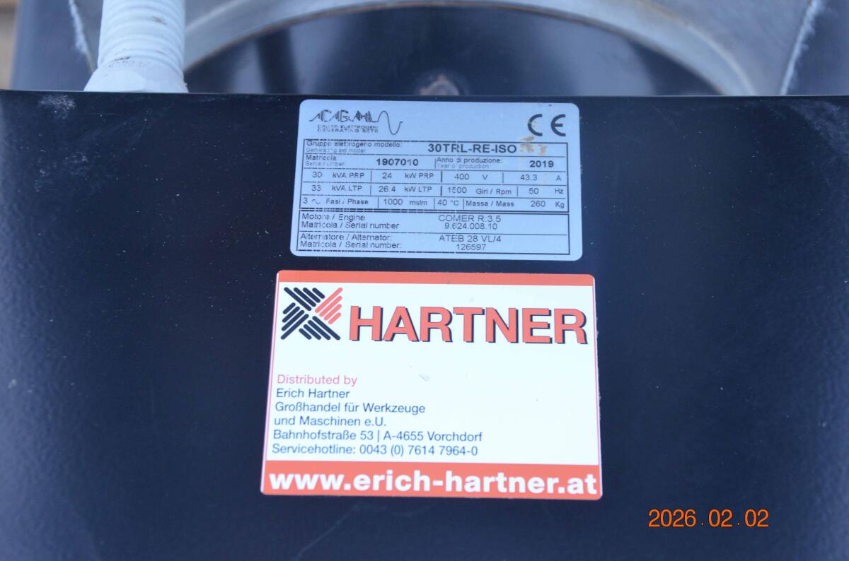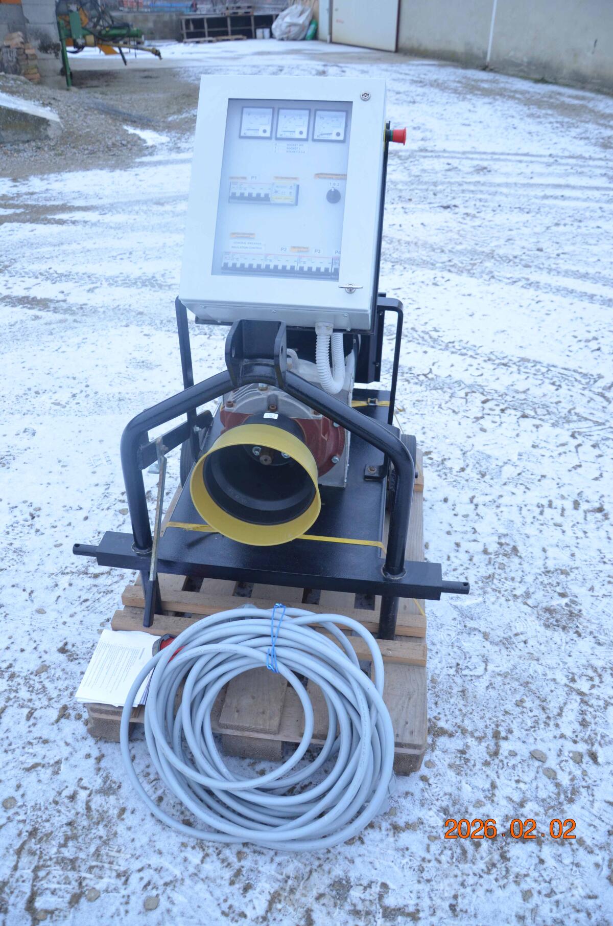 Hartner Zapfwellengenerator ZG 300/3 TR 30 kVA - 1.500 U/min, IP 44-55 für Haus und Feldbetrieb. Dauerleistung 30 kVA/24 kW, Langsamläufer, AVR Regelung, 270 kg. Dreipunktanhängung, 1x Hausbetrieb 63A, Feldbetrieb: 1x32A - 400V + 1x16A - 400V + 1x230V. Zubehör dabei: 15 m Kabel samt Stecker für Hauseinspeisung. Inkl. Frequenz und Spannungsüberwachung.
