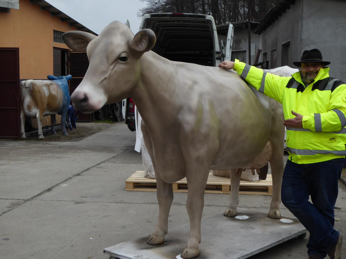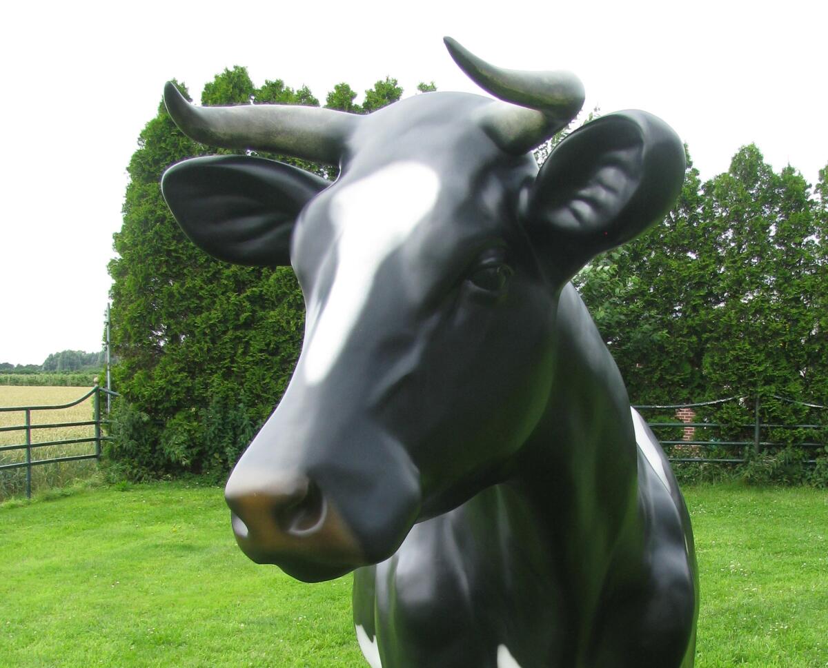 Holstein Deko Kuh, „Adelchen“, schwarz-weiß, links schauend, Höhe: 175 cm, Länge: 270 cm, Tiefe: 85 cm, Kopf nach links schauend, wenn man am Schwanz der Kuh steht und nach vorne schaut. Auf Wunsch mit Kopf gerade ausschauend lieferbar, auf Wunsch mit Kopf nach rechts schauend lieferbar, ohne Hörner, Material: Glasfasermatten mit Kunstharz, für Innen & Außen geeignet, glatte Oberflächenstruktur, UV-beständig, Effektaugen-Bemalung, Befestigungshalterungen an den Füßen, versandkostenfreie Lieferung innerhalb Deutschlands (ausgenommen Inseln), Paletten-Versand, Sammeltransport, frei Bordsteinkante.