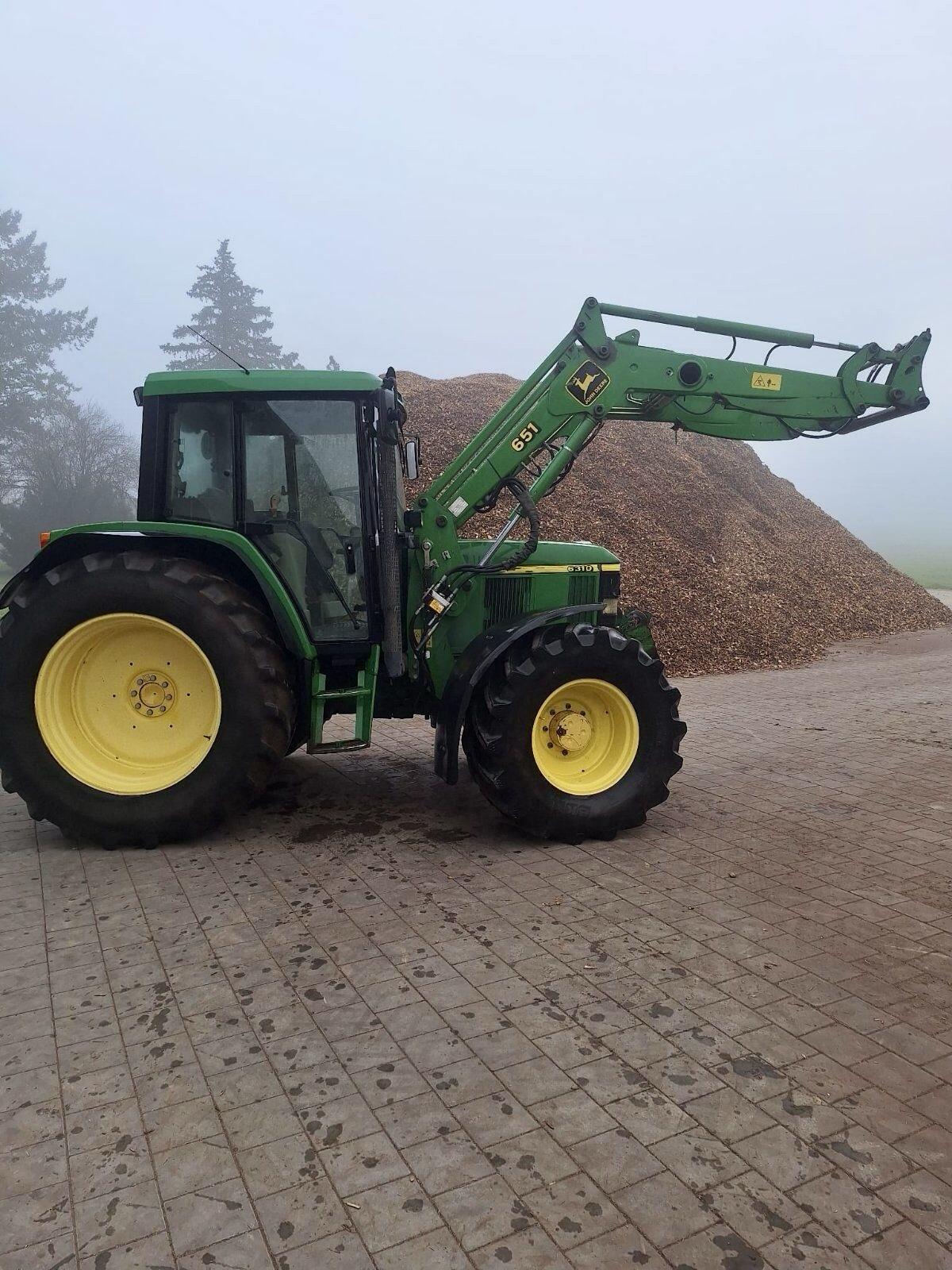 John Deere 6310 Premium, EZ 5/2000, Bj. 2000, 8.262 Bstd. John Deere AutoQuad Getriebe 40 km/h, 100 PS 4 Zylinder, 3 dw Hydraulikventile, 1 dw Anschluss vorne. Fronthubwerk mit Frontzapfwelle. Klimaanlage, Druckluftbremsanlage, 3 Zapfwellengeschwindigkeiten 540/750/1000. Bereifung vorne 540/65R24 ca. 25%, Bereifung hinten 600/65R38 ca. 25%. Gefederte Vorderachse. John Deere Frontlader 651, mit 3. Steuerkreis. Bei Fragen einfach melden.