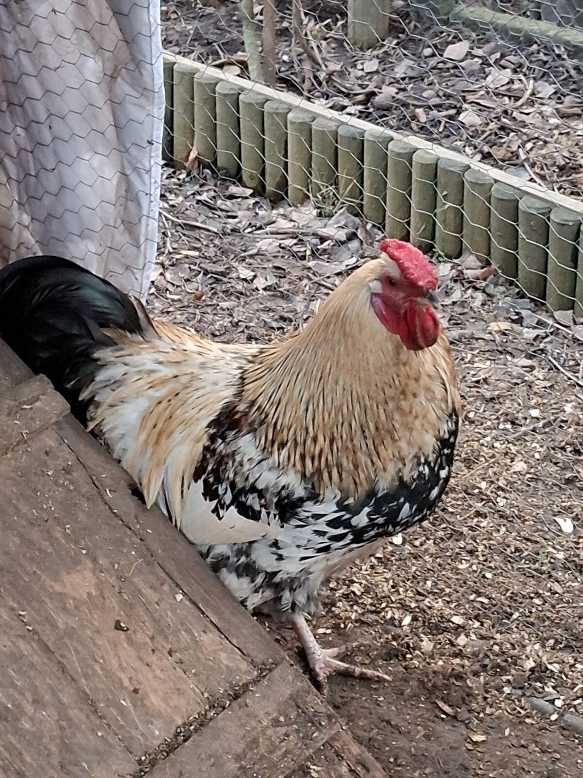 Farbenprächtiger, kräftiger Junghahn aus liebevoller Naturbrut, Vater reinrassiger Wyandotten-Hahn.