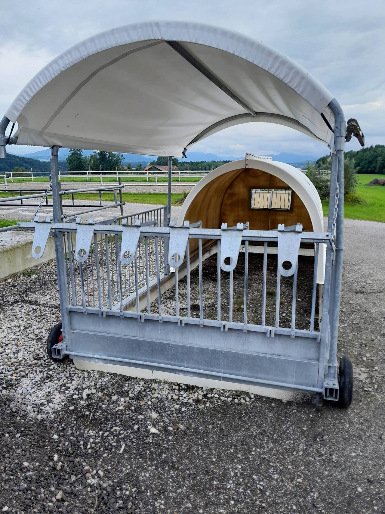 Verkaufe Kälberiglu von Hirl für 6 Kälber, fahrbar, gesamt 6 m x 2,40 m, Iglu 2,90 m x 2,40 m.