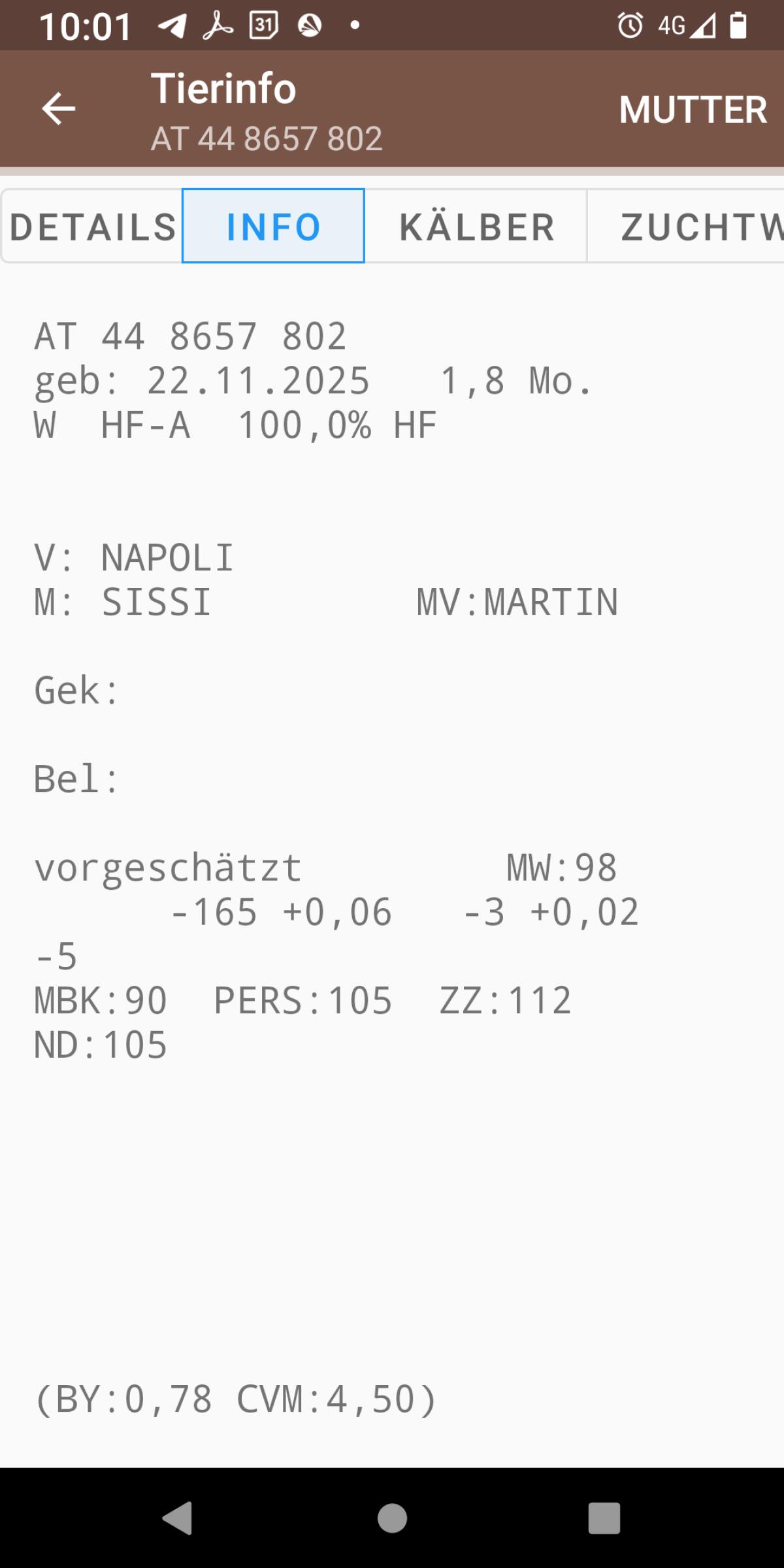 Weibliches Bio-Zuchtkalb Holstein Friesian, 100 kg Lebendgewicht, geboren am 22.11.2025, enthornt. Mutter Sissi aus Lebensleistungslinie, Einsatzleistung: 28,8 l, Melkbarkeit: 3,16. Bio-Heumilchbetrieb mit Ganztagsweide.