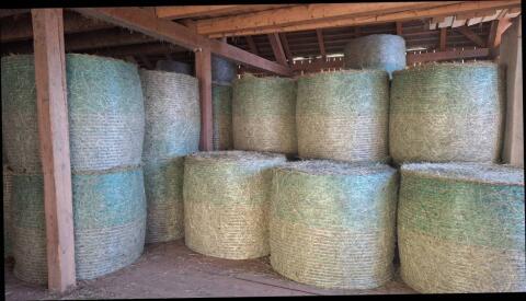 Heuballen 2. Schnitt 2025, durchschnittliches Gewicht pro Ballen 13 kg, ca. 500 Stk. vorrätig.