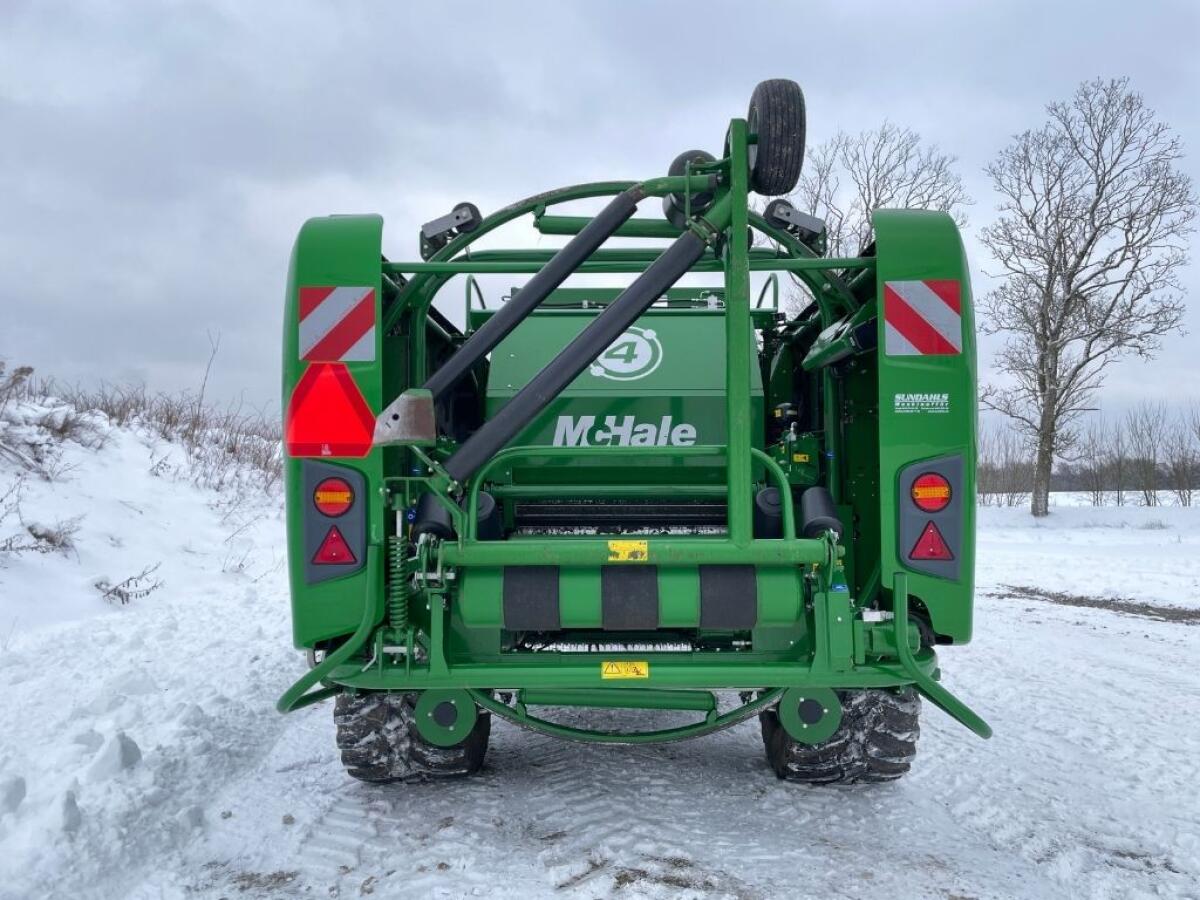 McHale Fusion 4 Plus Rundballenpresse. Modelljahr: 2023. Anzahl Ballen: 15.718 Stk. Ballendurchmesser: 1.250 mm, Ballenbreite: 1.230 mm, Aufnahmebreite: 2.100 mm. Monitor, Kamera, Feuchtigkeitsmesser, Waage. Reifen: 680/50R22.5, CE-Kennzeichnung. Abmessungen und Gewicht: Länge: 5.800 mm, Breite: 2.760 mm, Höhe: 3.020 mm, Gewicht: 5.670 kg.