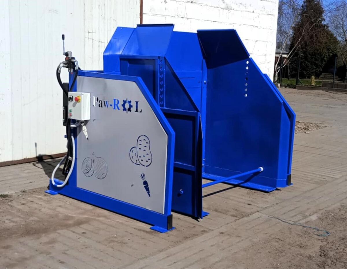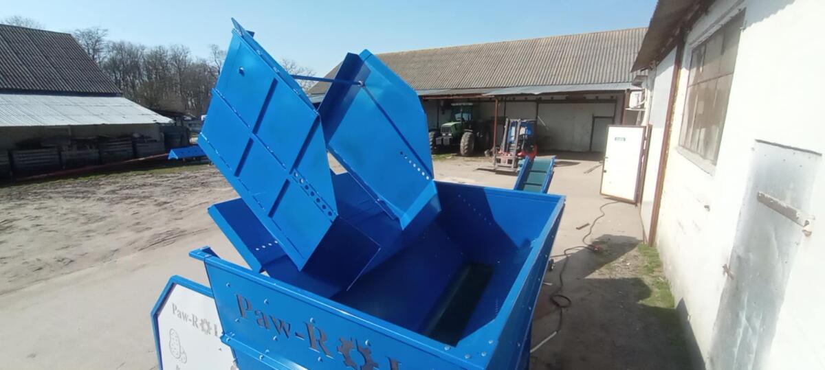 Zum Verkauf steht eine Kippvorrichtung (Kipper) für Palettenboxen mit einstellbarer Breite von 110 cm bis 175 cm. Solide Konstruktion, ausgestattet mit 2 hydr. Zylindern, ideal für die Arbeit mit verschiedenen Typen von Palettenboxen. Wir produzieren außerdem Annahmebehälter, Aufgabetrichter, Bunker für Kippvorrichtungen, Bürstmaschinen, Reinigungsmaschinen, Sortiertische, Sortierbänder. Export möglich. Hersteller aus Polen. EU – 0% MwSt., außerhalb der EU +23% MwSt.