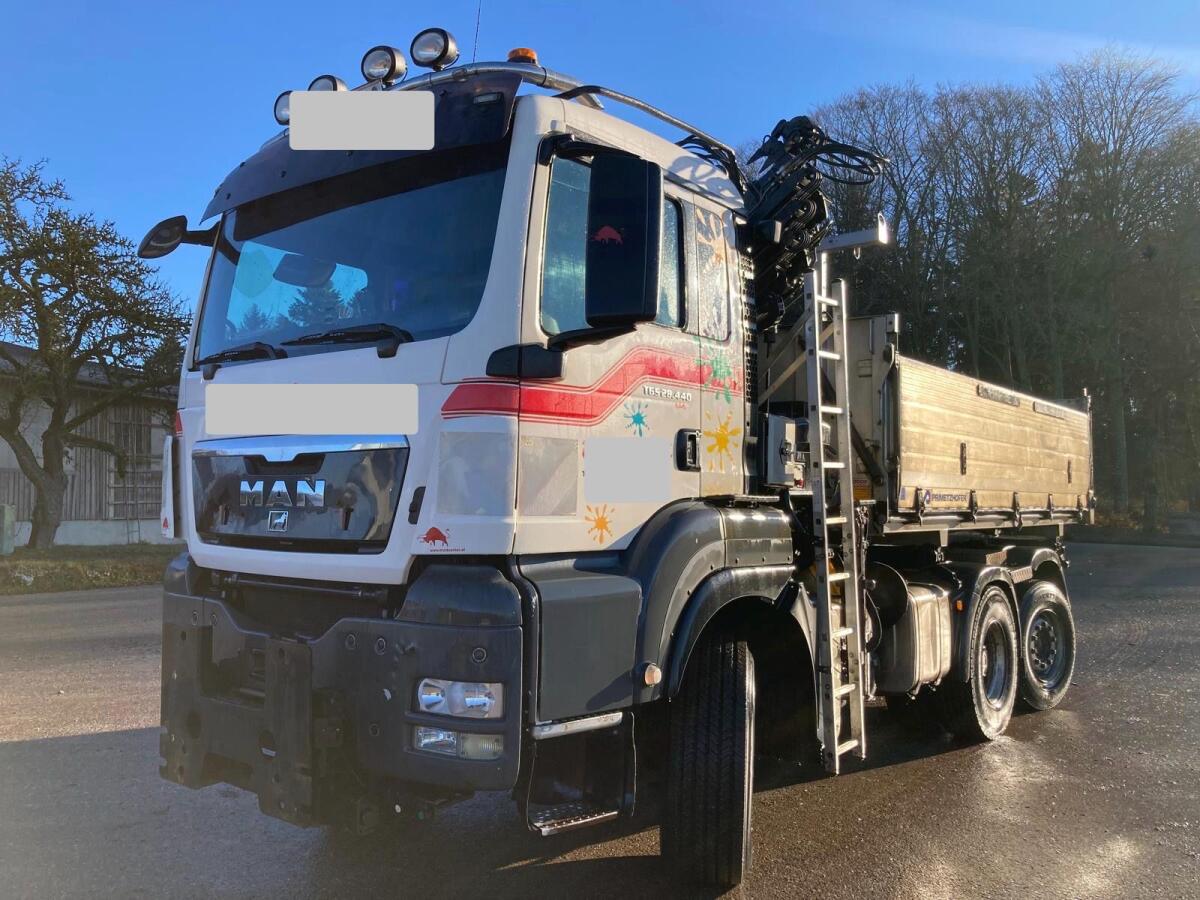 Prodaje se kamion MAN TGS 28.440 6x4-4 BL uključujući HIAB dizalicu tip 144 ES-4 HIDUO, oba godina proizvodnje 2008., prva registracija siječanj 2009., kiper karoserija, 609.500 km, oprema za zimski servis.
