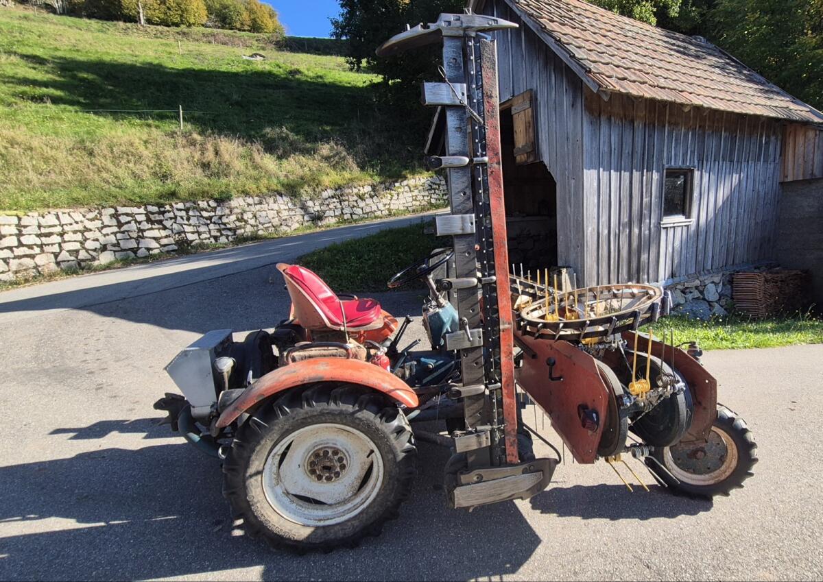 Reform 2000 Aufsitzmäher, 2 Zylinder 4-Takt Steyr-Puch Boxer-Motor ST690, Hinterradantrieb, Einzelradbremsen und Differentialsperre, extreme Hangtauglichkeit mit Spatenrädern, 4 Vorwärts und 4 Rückwärtsgänge, Busatis Doppelmessermähwerk mit Ersatzmesser, Maschine war bis Sommer 2025 im Einsatz, Bremsen wurden 2023 erneuert. Achtung: Motor muss repariert werden, vermutlich blockiert ein Kolben. Davor hatte er eine gute Leistung. Abgebildetes Zubehör gegen Aufpreis erhältlich (Zwillingsräder oder Spatenräder das Paar für je € 350,-).