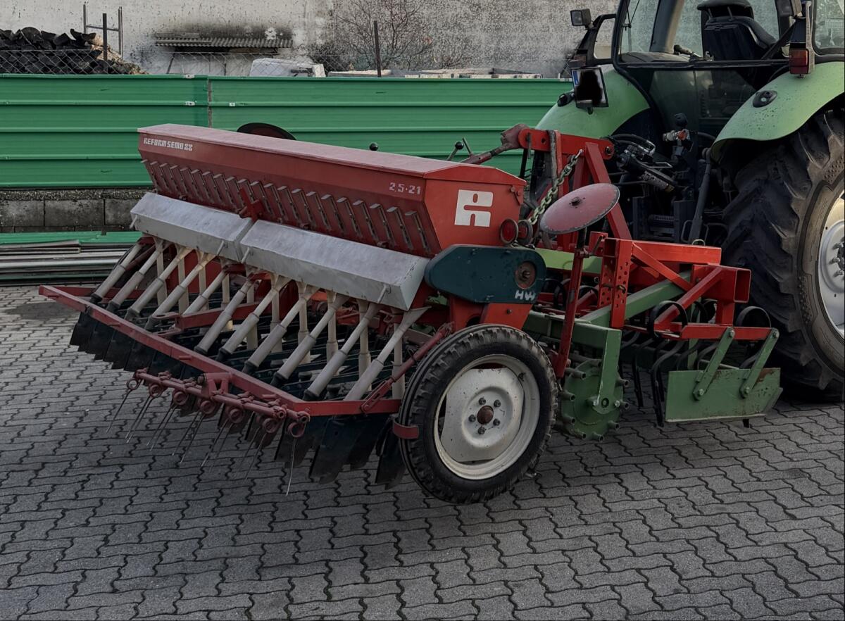 Biete hier meine Sä-Kombination zum Verkauf an, bestehend aus Kurzkombi und Reform Semo 88. Schreiber & Sohn Kurzkombi 2,5 m, neuwertiger Zustand, 3 Reihen inkl. Stabwalze. Reform Semo 88 2,5 m, 21 Reihen.