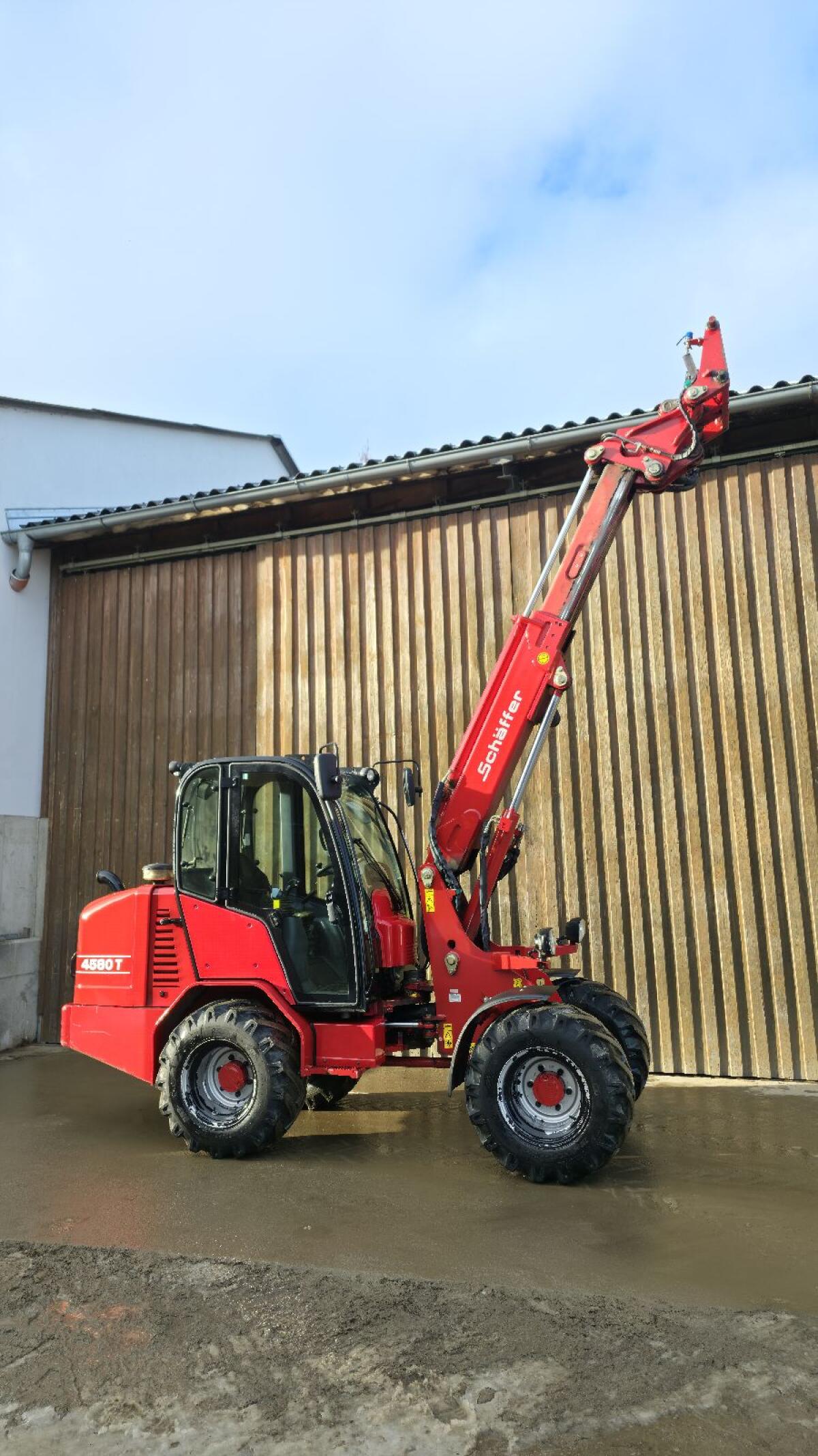 Schäffer 4580T, 4.200mm Hubhöhe am Schaufeldrehpunkt, 75PS, 30km/h, Bj. 2012, Kabine inkl. Heizung und Lüftung, 1.500mm Breite, 2.350mm Höhe mit Kabine, Zusatzstg. inkl. Rücklauf vorne, Weidemann HV-Aufnahme, hydr. Geräteverriegelung, Palettengabel. Maschine ab Herbst 2026 verfügbar.
