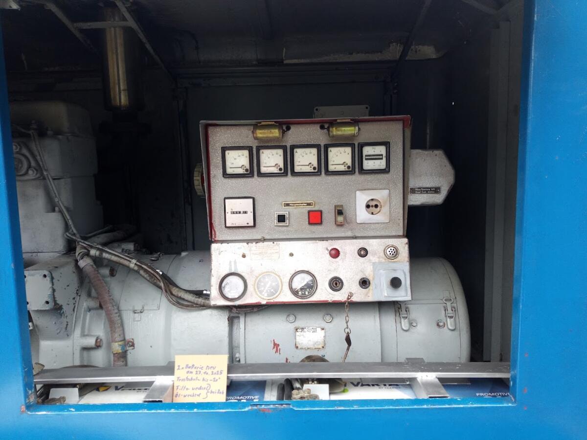 Ich verkaufe hier ein Stromaggregat mit 38 kVA (30 kW Dauerleistung). Top Zustand (siehe Bilder). Sofort einsatzbereit. Batterien neu. Alles gewechselt (Filter, Keilriemen, Wasserschläuche).