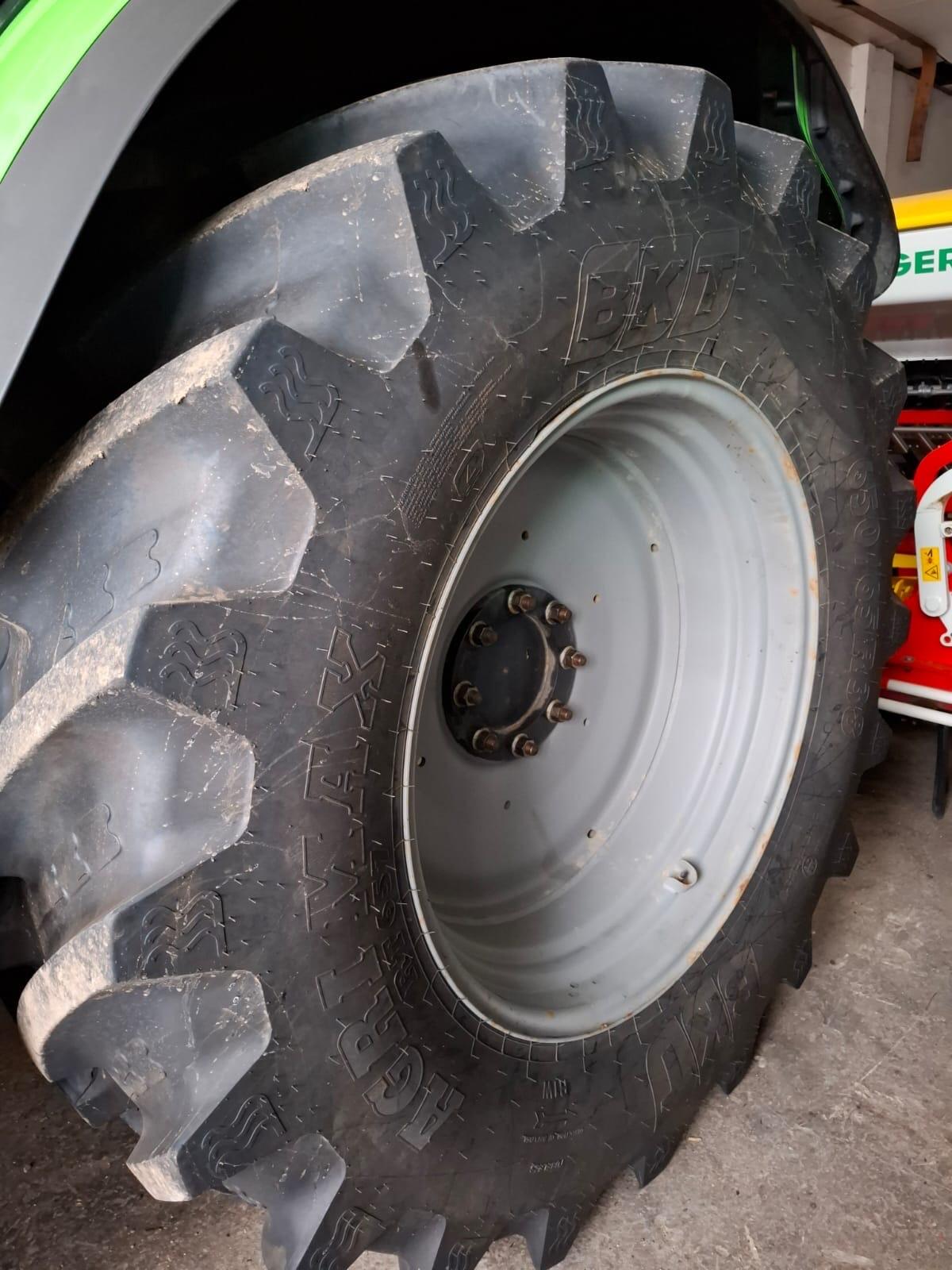 Verkaufe Traktorreifen, vorne Michelin 540/65R28, 70% Profil, hinten BKT 650/65R38, 100% Profil. Preis: € 3.800,- alle vier Reifen ohne Felgen.
