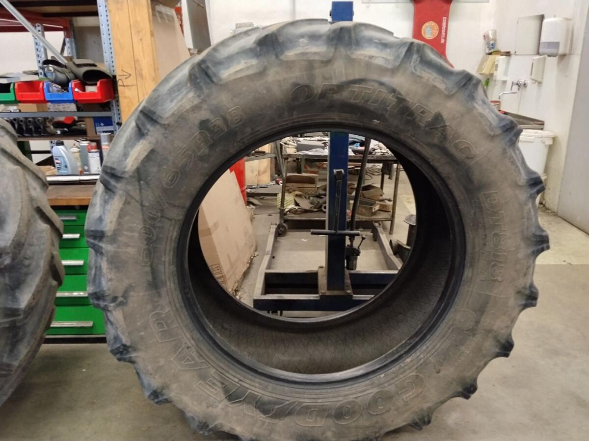 Verkaufe Traktorreifen Goodyear Optitrac: 2 Stk. 600/65R38 und 2 Stk. 540/65R24. Die Reifen sind dicht und wurden bis zuletzt schlauchlos gefahren. Profil laut Fotos: Hinterreifen noch recht gut, Vorderreifen außen abgefahren. Wegen Neubereifung abzugeben. Preis: € 150,- pro Hinterreifen, € 50,- pro Vorderreifen. Alle zusammen € 350,-.