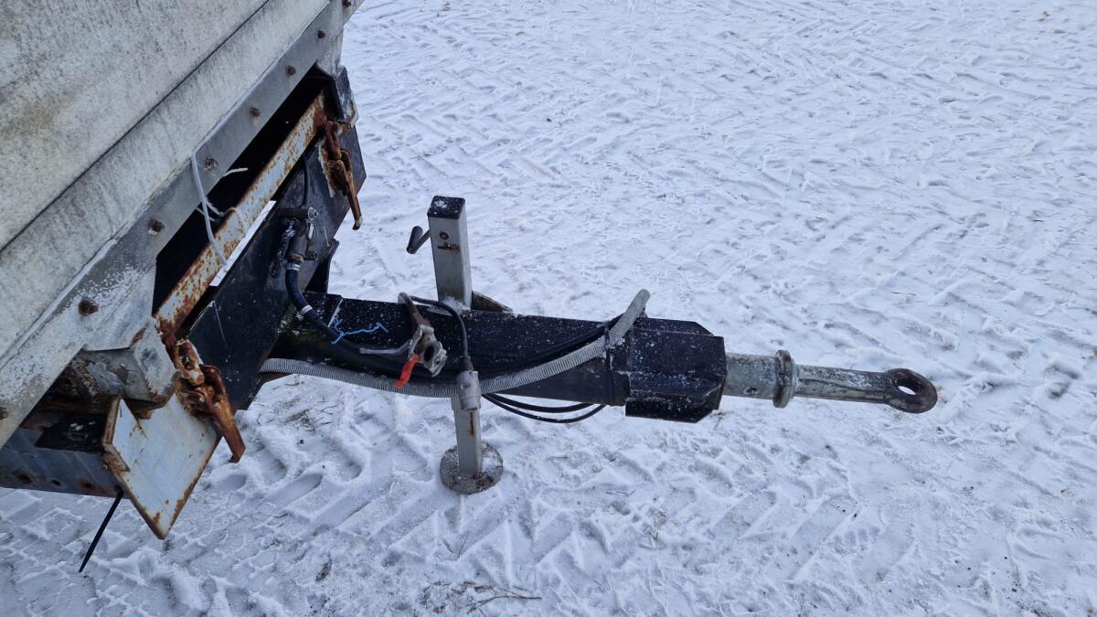 Viehanhänger mit Aluaufbau, hydr. Laderampe, el. Betätigung mit 24V-Versorgung über 2 Batterien, Wechselaufbauanhänger, Unterbau dem Alter entsprechend mit Rost, Trennwand innen, Schienen unter dem Dach, Zwillingsbereifung 225/75R17,5, Luftfahrwerk, absenkbar, Versorgung über Druckluftanschluss, Laderaumlänge ca. 4,50 m, Außenmaße LxBxH ca. 5,95 x 2,30 x 3,15 m.