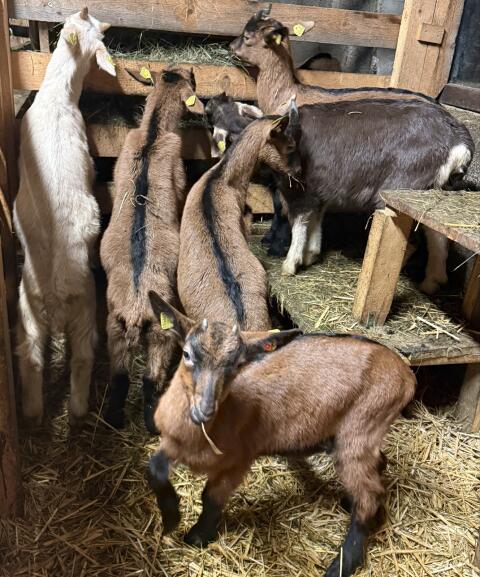 Rasse Thüringer und GGZ, sind 9-11 Wochen alt, fressen bereits Heu, Silo und Kraftfutter, sind von der Milch abgewöhnt. Koze Mliječne koze