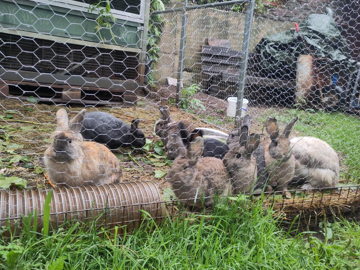 8 Hasen zu verschenken wegen Umzug, alle Männchen kastriert und sehr lieb, sind an Kinder gewöhnt. Vermittlung mindestens zu 2, am liebsten würden alle zusammenbleib