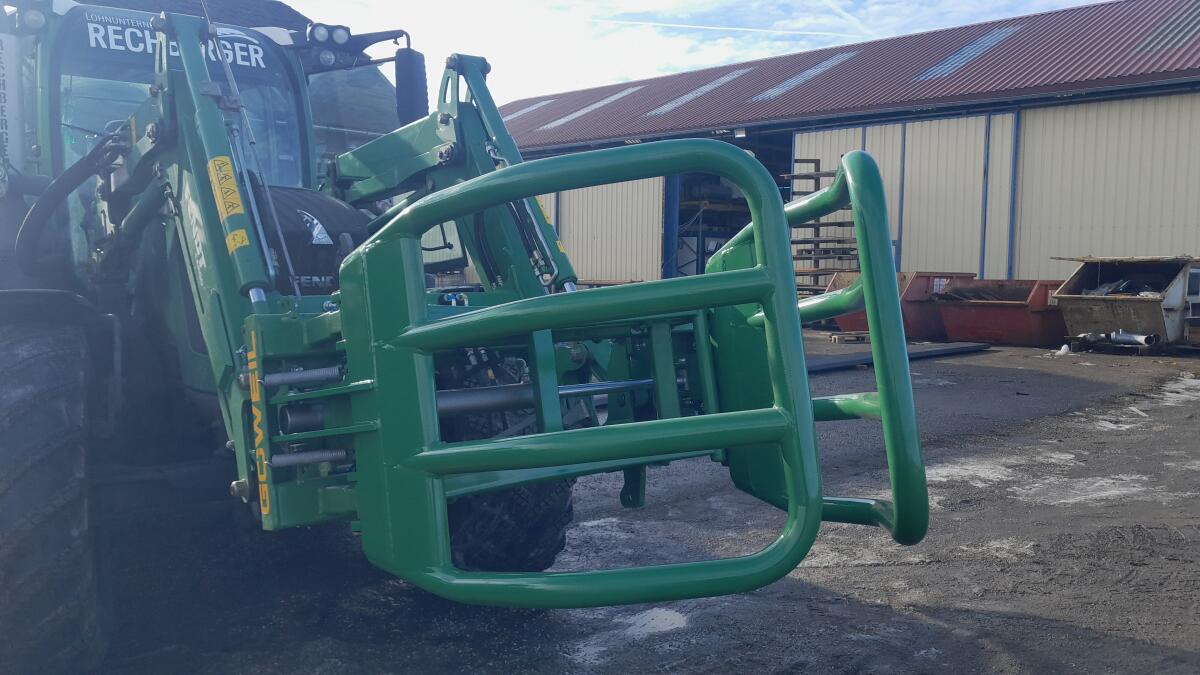 Ballenzange für Rund- und Quaderballen, extra nur 175 kg leicht, damit auch kleine Lader viel heben können. 1.000 kg Tragkraft, Eurotrac, TOYO, Wematik und einige me