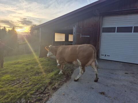 Jungkuh günstig abzugeben, 25 l Milch pro Tag, sehr brav beim Melken, auf 1/4 gibt sie leider keine Milch, Melkbarkeit 1, 5. Gekalbt am 26.10.2025. Tržište goveda Sim
