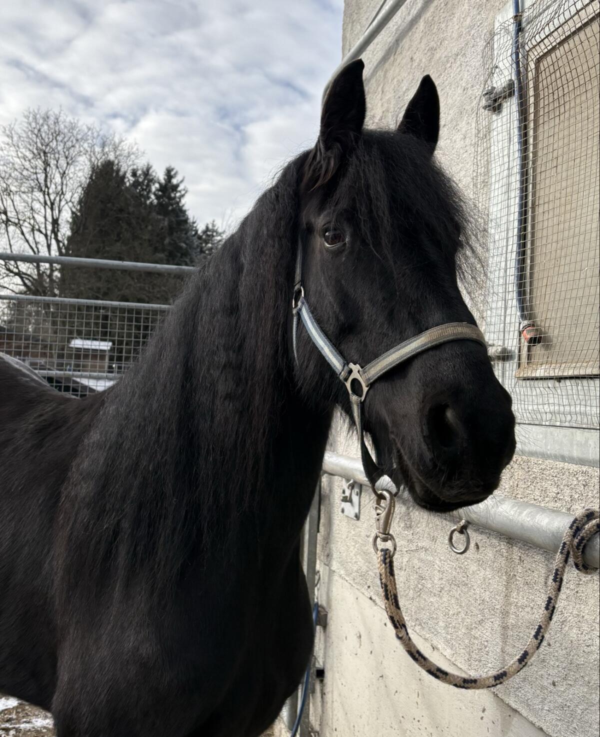 4-jähriger Friesenmix-Wallach. Ist einspännig gefahren und ist dabei sehr artig. Auch im Verkehr zeigt er sich nicht schreckhaft. Hat ein Stockmaß von 153 cm. Nähere